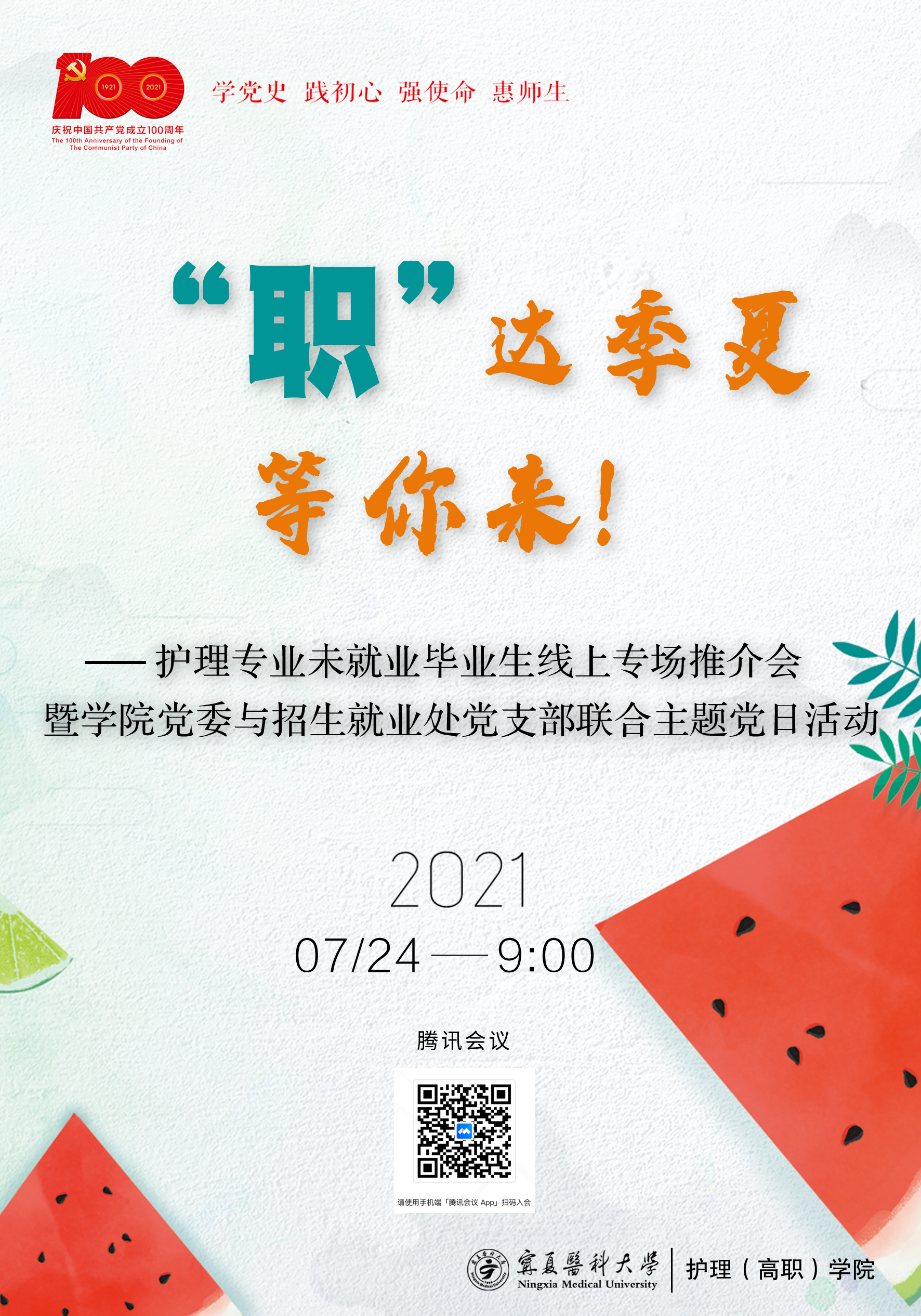 “职”达季夏,等你来——护理(高职)学院举办2021届未就业毕业生线上专场推介会