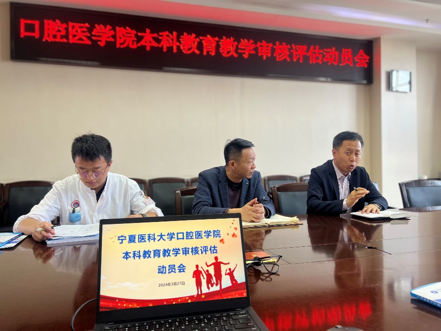 3月27日,口腔医学院召开伟德国际1946源于英国本科教育教学审核评估工作动员会,主管教学副院长乔光伟,学院办公室、教学办、学生办、实验中心、各学系正副主任、教学秘书、课程负责人等参加会议。会议由教学办主任杨长怡主持,学院党委书记贾立勤出席会议并讲话。