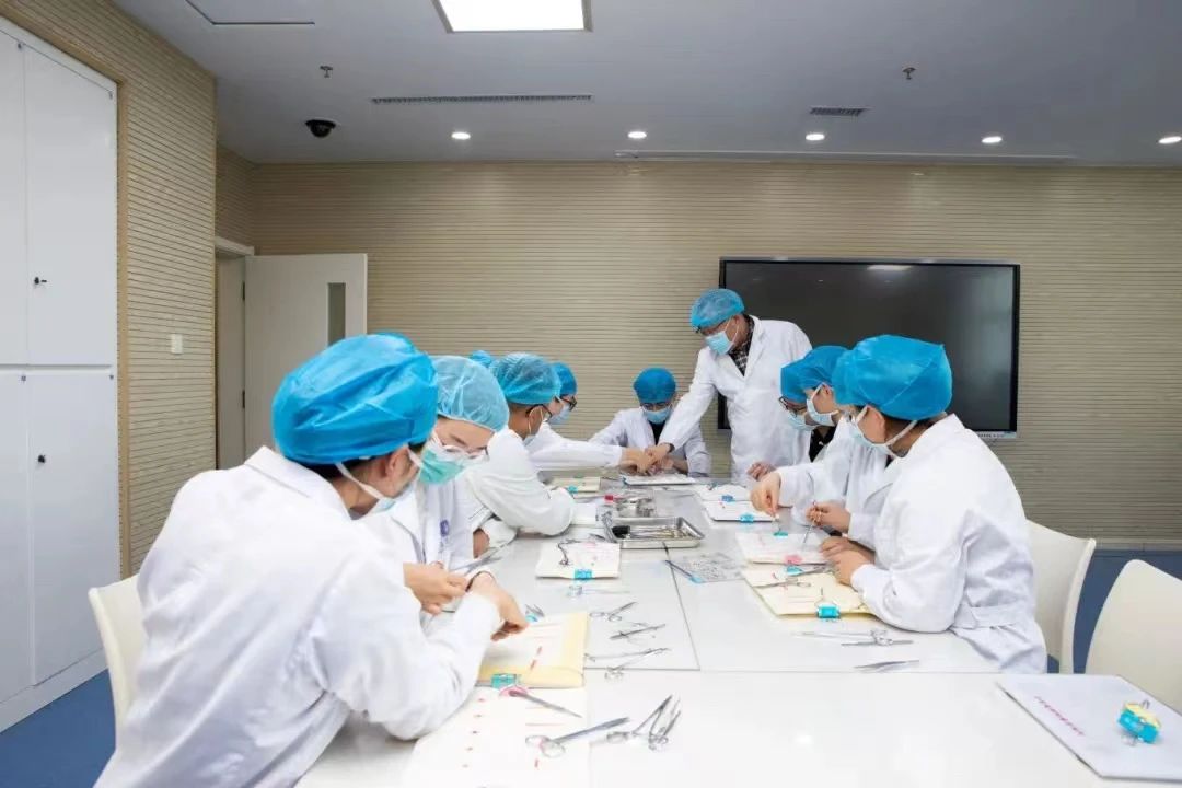 2021年,学院(医院)修订人才培养方案,形成“校(院)—— 附属医院深度融合”的人才培养模式,开设《呼吸系统疾病》等17门系统整合课程,开展“以学生为中心、以教师为主导”的课堂教学模式,制定《第一临床医学院早期临床实践活动实施方案》,分年级进行心肺复苏、刷手、消毒等基本专业技能培训,实施以学习成果为导向的教学评价体系和“3+3+2”考核评定模式。