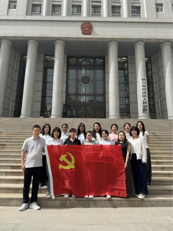 6月24日,人文与管理学院教工一支部和二支部的14名教师党员走进兴庆区人民法院观摩一起掩饰隐瞒犯罪所得罪案件庭审。