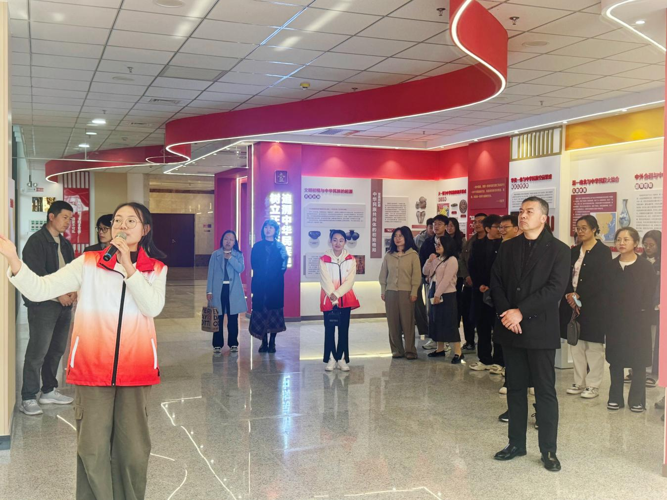 活动中,全体党员认真聆听了“红石榴”宣讲员对学校铸牢中华民族共同体意识教育实践基地“追溯中华民族史 树立正确历史观”等6个展厅内容的讲解,一同深入了解宁夏地区各民族共同发展、建设家园的历史,以及新时代背景下学校在民族团结进步事业中取得的显著成果,深刻感受到了铸牢中华民族共同体意识是国家统一之基、民族团结之本、精神力量之魂。