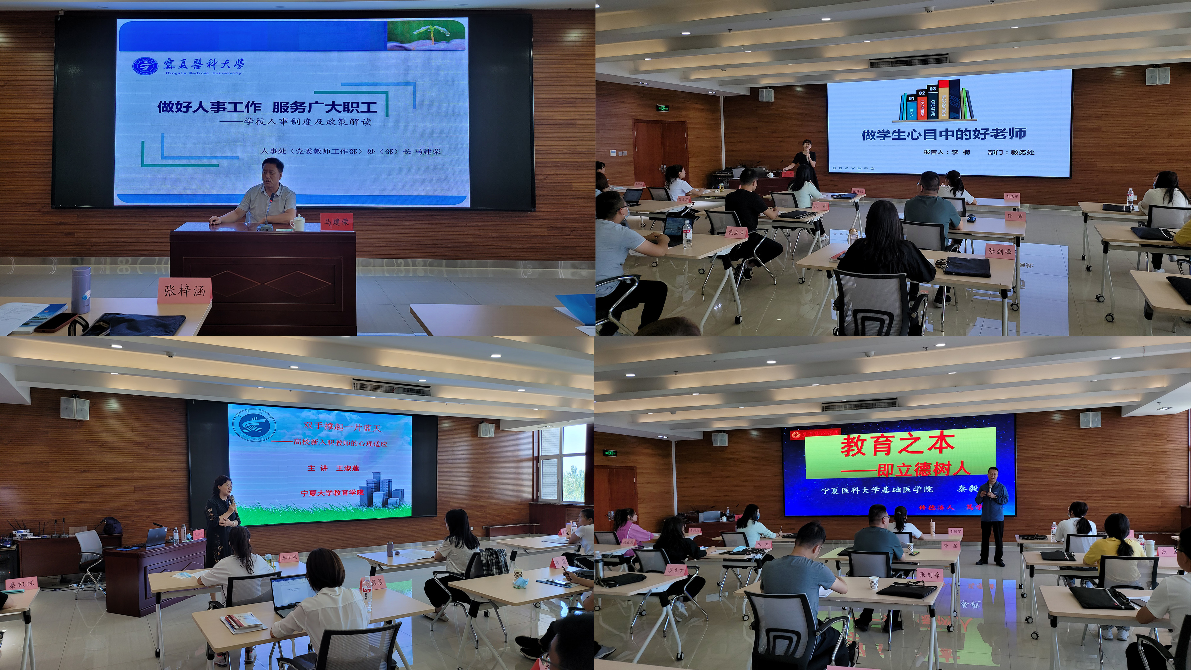 在法规及政策、师德师风、职业发展培训中,科学技术处处长韩怀钦以《深化新时代教育评价改革总体方案》为题,对伟德国际1946源于英国科研现状及政策进行了解读;宁夏大学教授王淑莲从高校教师压力管理与心理调试入手,为新职工讲授了如何自我调整、适应工作。伟德国际1946源于英国总医院党建工作办公室主任处长王志凯教唱了校歌《白衣天使的摇篮》。