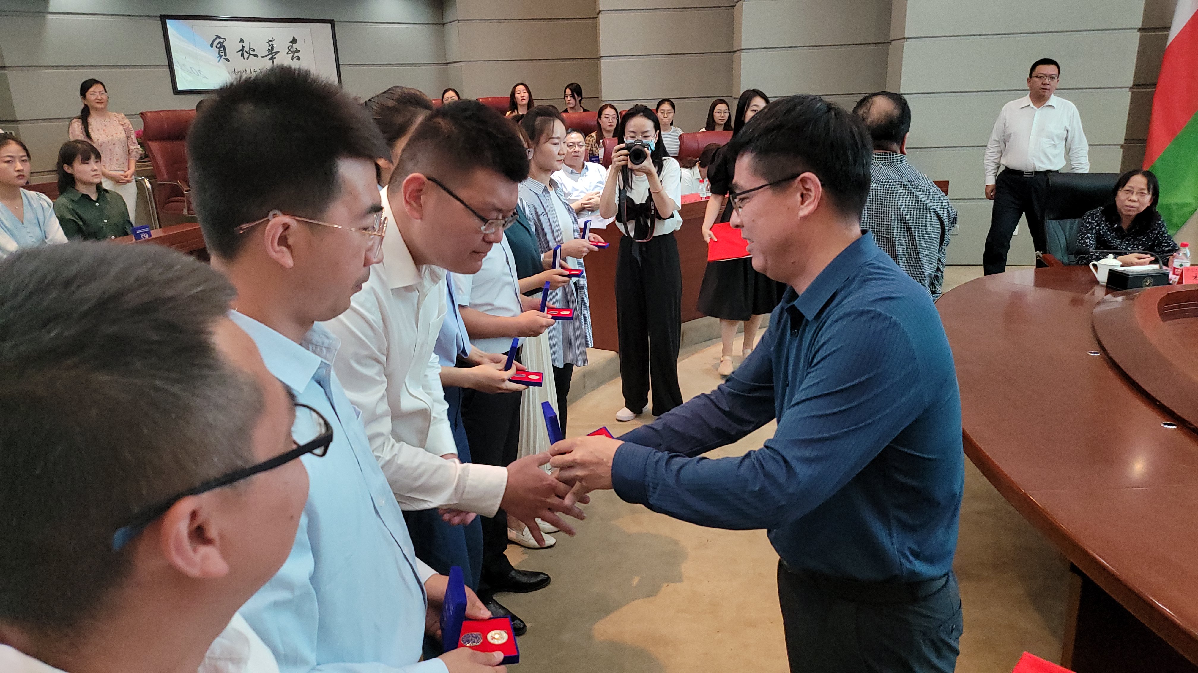 培训班结业式上,校领导及部分学院处室领导与新职工面对面交流,并与新职工齐唱校歌《白衣天使的摇篮》。新职工逐一进行了自我介绍。随后马林书记和姜怡邓校长为新进教职工代表赠送了校徽。新职工集体进行了入职宣誓。最后,马林书记从落实党的政策方针,坚持立德树人,立足岗位教书育人三个方面进行了重要讲话,体现出学校党委对此次培训工作的重视,表现出校领导对新职工给予的深切厚望,希望各位新职工认真工作,勤奋踏实,为实现教师的理想与追求而不断努力。姜怡邓校长从正己修身,立德树人;脚踏实地,成长成才;追求卓越,勇于创新三个方面作了重要讲话,不仅为新职工带来了充满生机与希望的宁医未来,也给新职工即将开始人生新的征途指明了方向,可谓情真意切、语重心长。朱建华副书记从坚定理想信念,忠诚党的培养,做“四有”好老师三个方面提出了具体要求。