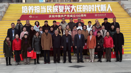最后,学校党委书记马林,校长、党委副书记姜怡邓,党委副书记朱建华,部分党政部门负责人与荣休教师合影留念。