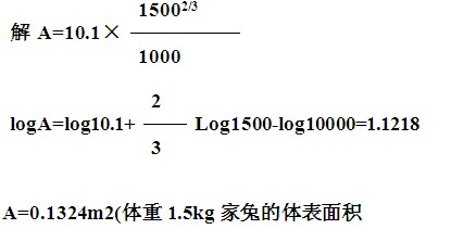 解:实验用大白鼠的体重一般在200g左右,其体表面积(A)为: