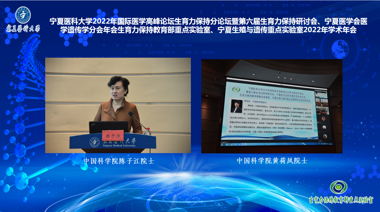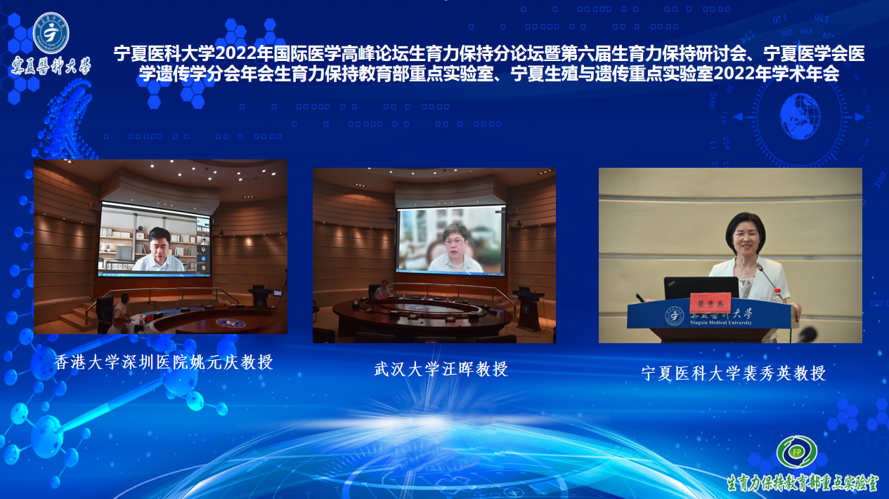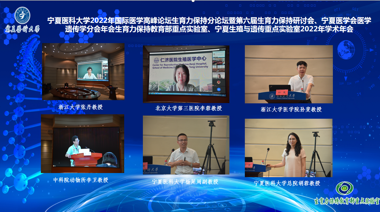 6月18-19日,伟德国际1946源于英国2022年国际医学高峰论坛生育力保持分论坛暨第六届生育力保持研讨会、宁夏医学会医学遗传学分会年会、生育力保持教育部重点实验室/宁夏生殖与遗传重点实验室年会成功举行。中国科学院陈子江院士、黄荷凤院士、浙江大学盛建中教授、武汉大学汪晖教授、上海交通大学吴际教授、浙江大学孙斐教授、广州妇女儿童医疗中心李卫教授、中国医学科学院宋伟教授等23位生殖领域专家围绕生育力保持基础与临床研究为大会做了精彩的报告。学校副校长丁聃出席开幕式并致辞。科技处长韩怀钦及生育力保持重点实验室的全体师生、总医院生殖中心及全区各市县从事妇幼保健和生殖医学的专业技术人员通过线下线上方式参加论坛。