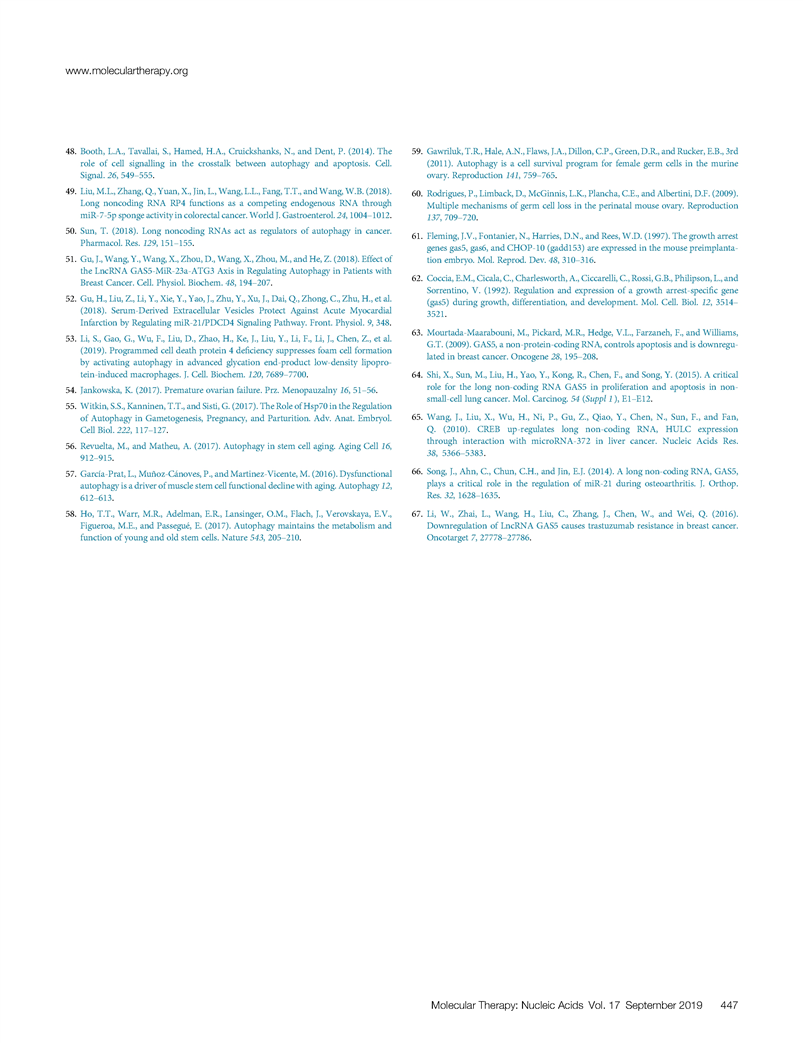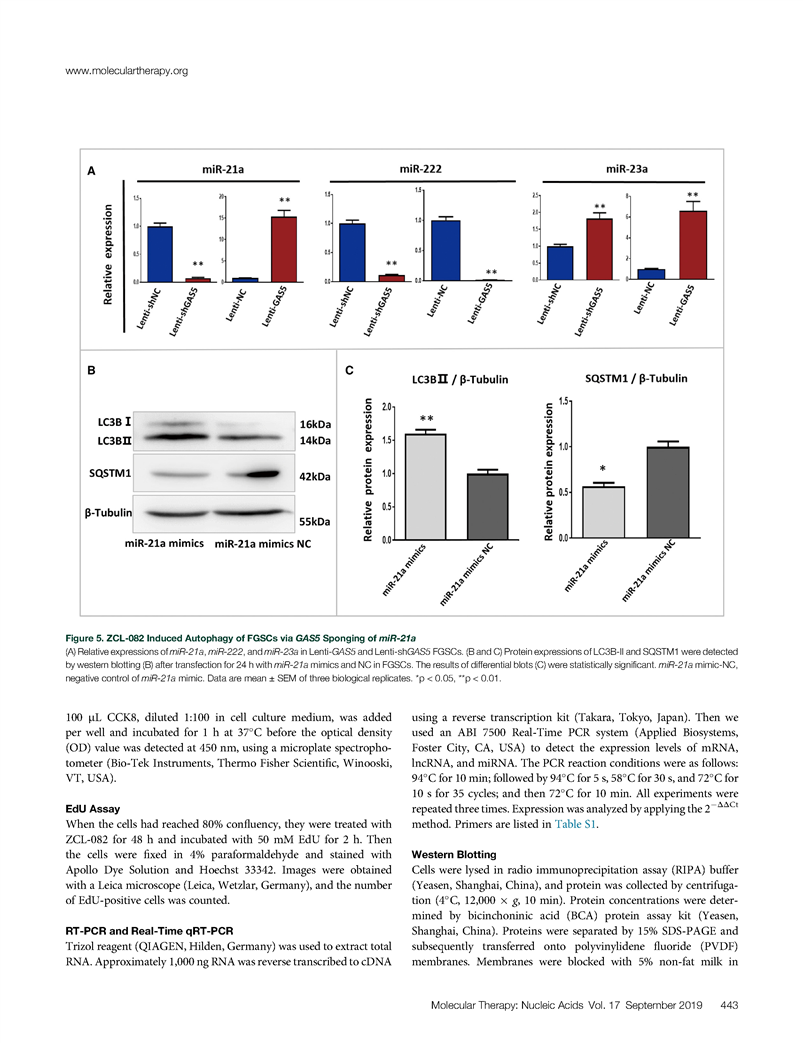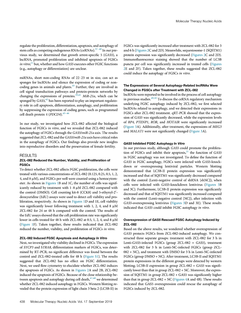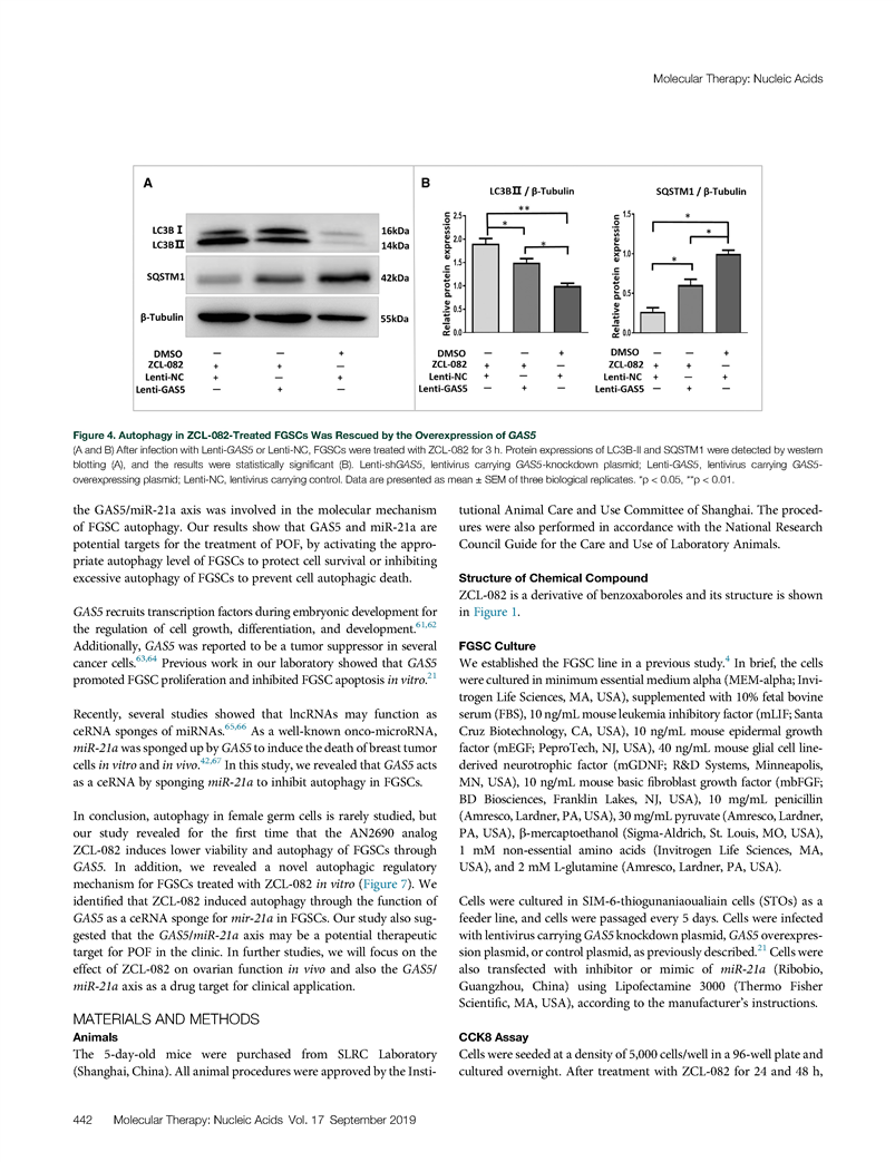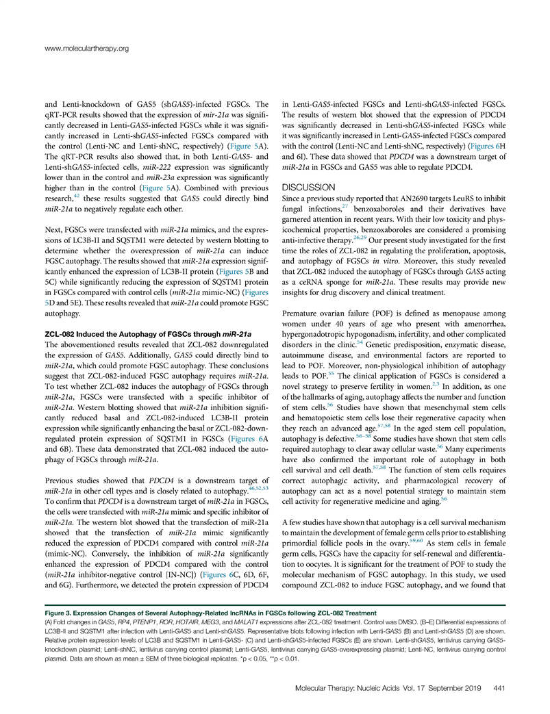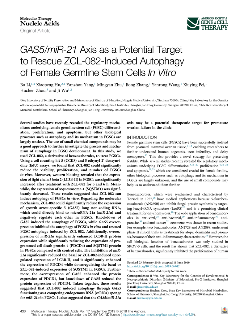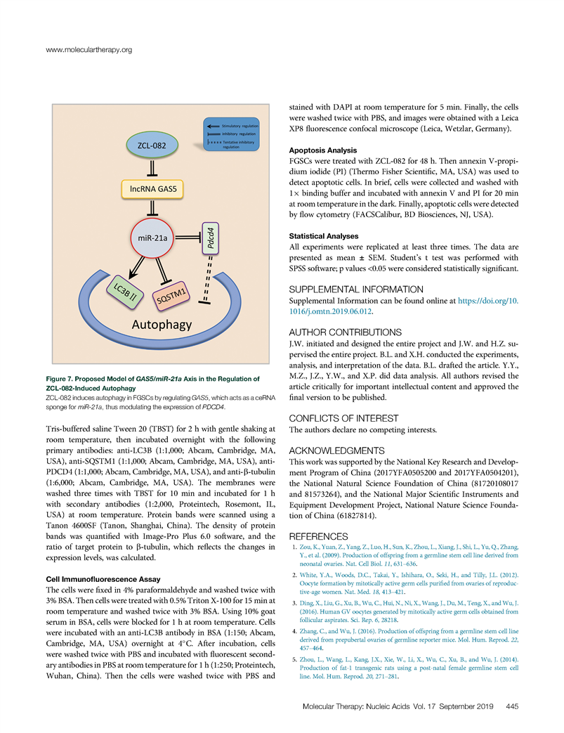 吴际-GAS5/miR-21 Axis as a Potential Target to Rescue ZCL-082-Induced Autophagy of Female Germline Stem Cells In Vitro