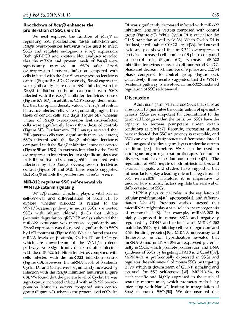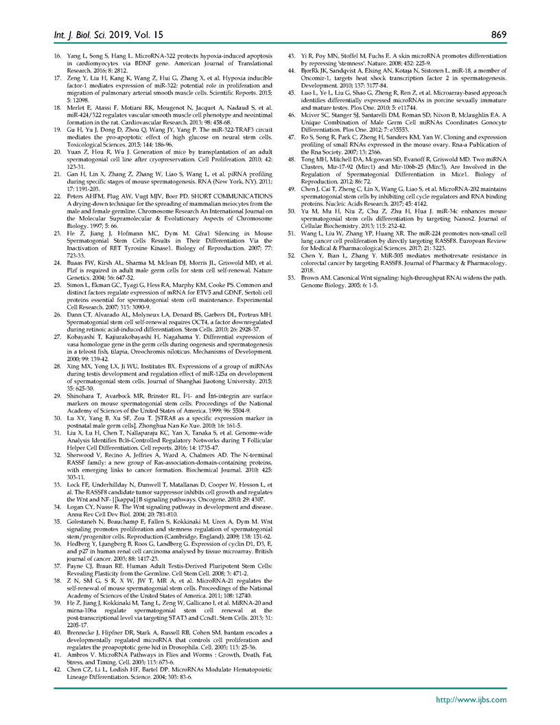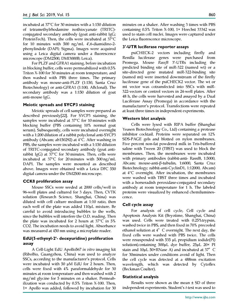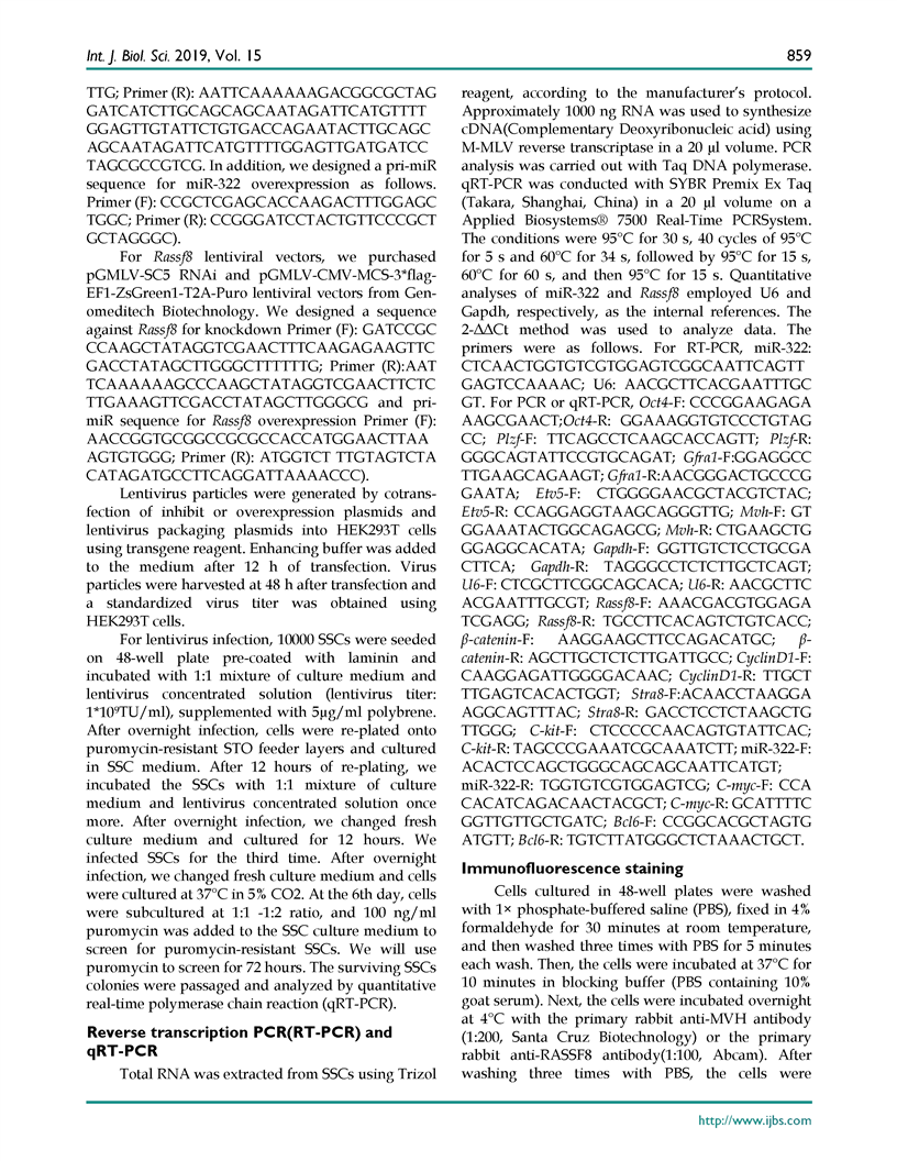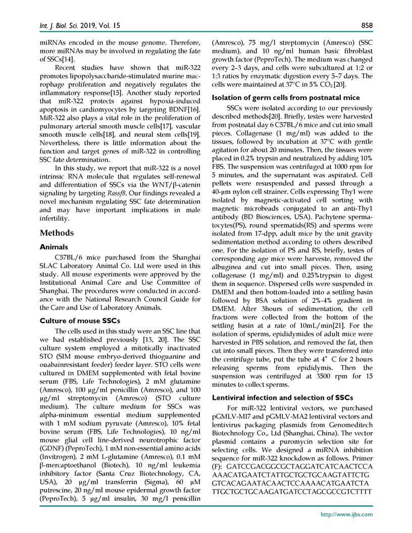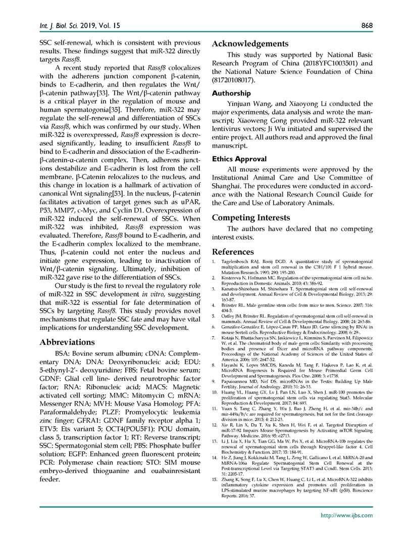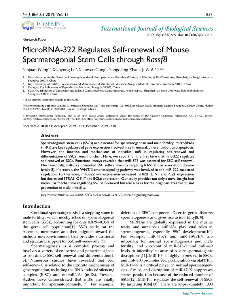 吴际-MicroRNA-322 Regulates Self-renewal of Mouse Spermatogonial Stem Cells through Rassf8