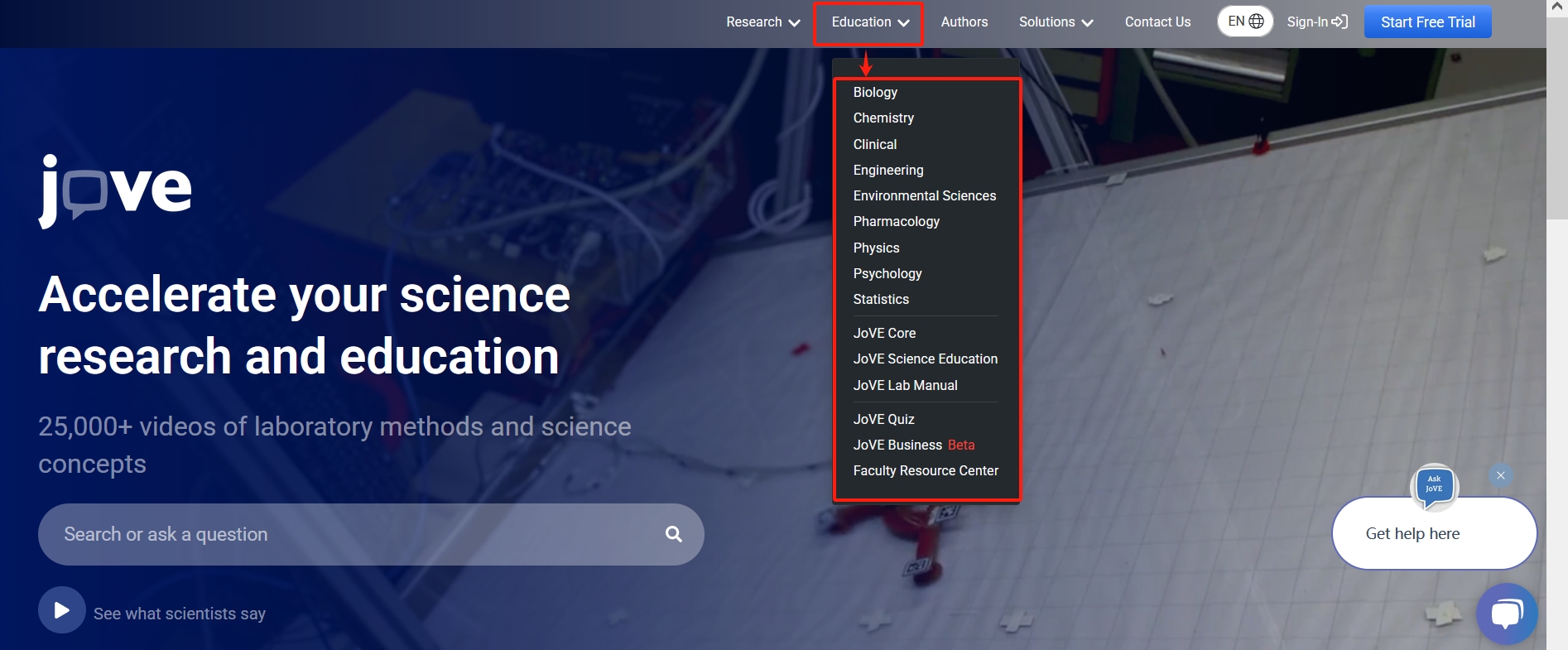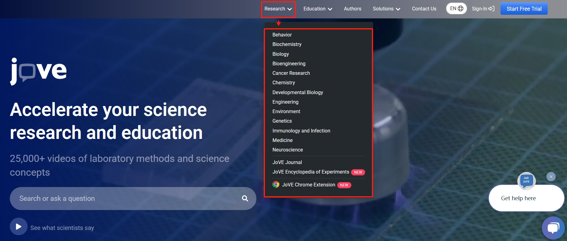 https://www.jove.com/research/biology