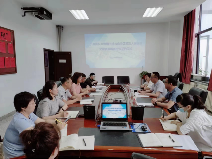 6月26日上午,学校图书馆与自治区第五人民医院举行“文献资源服务协议”签约仪式。自治区第五人民医院副院长杨伟宇、医教科科长杨耀文、裴小雨,图书馆馆长王惠芳、常务副馆长苏晓虎、副馆长高秀玲,相关部门负责人参加,会议由图书馆副馆长廖佳杰主持。