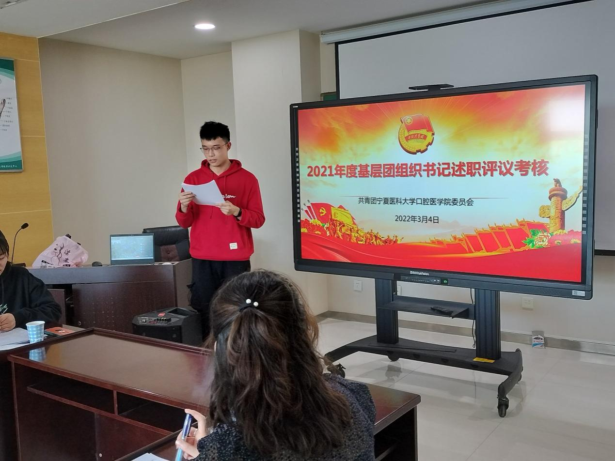 根据共青团伟德国际1946源于英国委员会《关于开展2021年度基层团组织书记述职评议考核工作的通知》文件精神,为深入贯彻落实基层团组织书记述职评议考核制度,落实全面从严治团要求, 3月4日下午,口腔医学院团委召开2021年度基层团组织书记述职评议会。此次述职采取“线上+线下”相结合的形式进行,学院党委副书记王云老师、团委副书记刘莉老师、各班团支部书记、团员代表等参加本次会议。