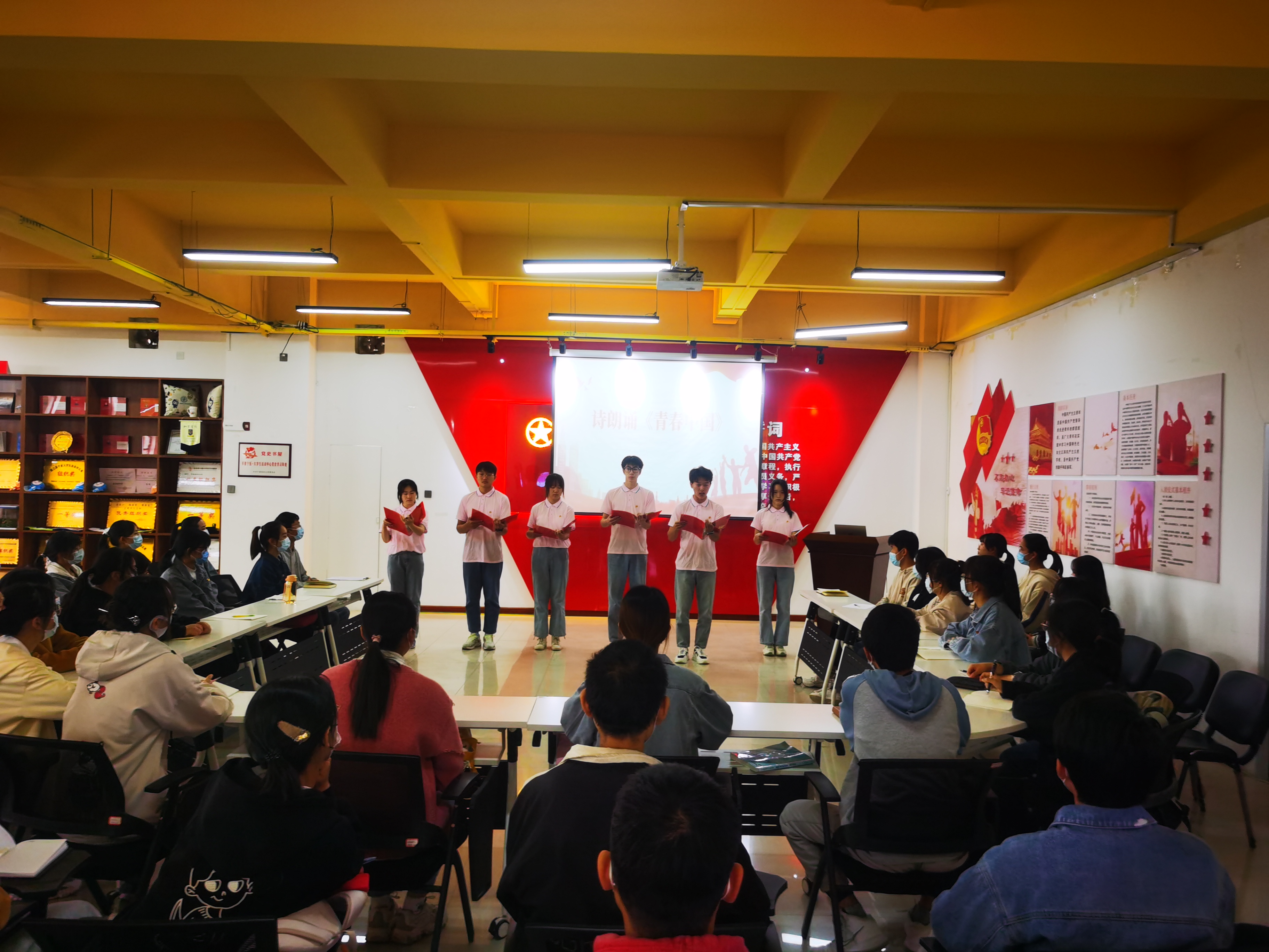 主题团日活动在介绍《习近平与大学生朋友们》这本中拉开帷幕。团支书结合视频资料向大家介绍了这本书的整体框架、丰富内容,深入解读了本书受青年学子广泛推崇的内在原因。在交流发言环节,4位同学通过研读《习近平与大学生朋友们》具体篇章,结合自己在学习生活中的所见所闻,从“年轻人要‘自找苦吃’”、“要给书本上的知识‘挤挤水’、“立志要高、起步要低”等方面分享了自己的学习心得。诗朗诵《青春中国》将主题团日活动推到了高潮,同学们慷慨激昂、掷地有声地诵读,深切讴歌了正在崛起、正值青春的伟大中国,抒发了青年大学生对祖国对人民的无比热爱之情。