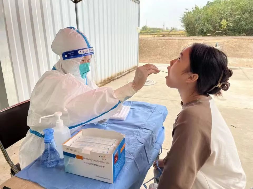 这次我不再是信息采集员,而是负责核酸样本的采集工作。“来,稍微仰一下头”,“小朋友,你很棒哦”……不知不觉中天色暗了下来,由于每采一次咽拭子都进行一次手消,加上秋雨后的村庄温度较低,手已经开始变得冰冷起来。朴实的村民会关心的说“不着急,歇一会”。村干部也全程在一旁维持秩序,为我们提供服务。