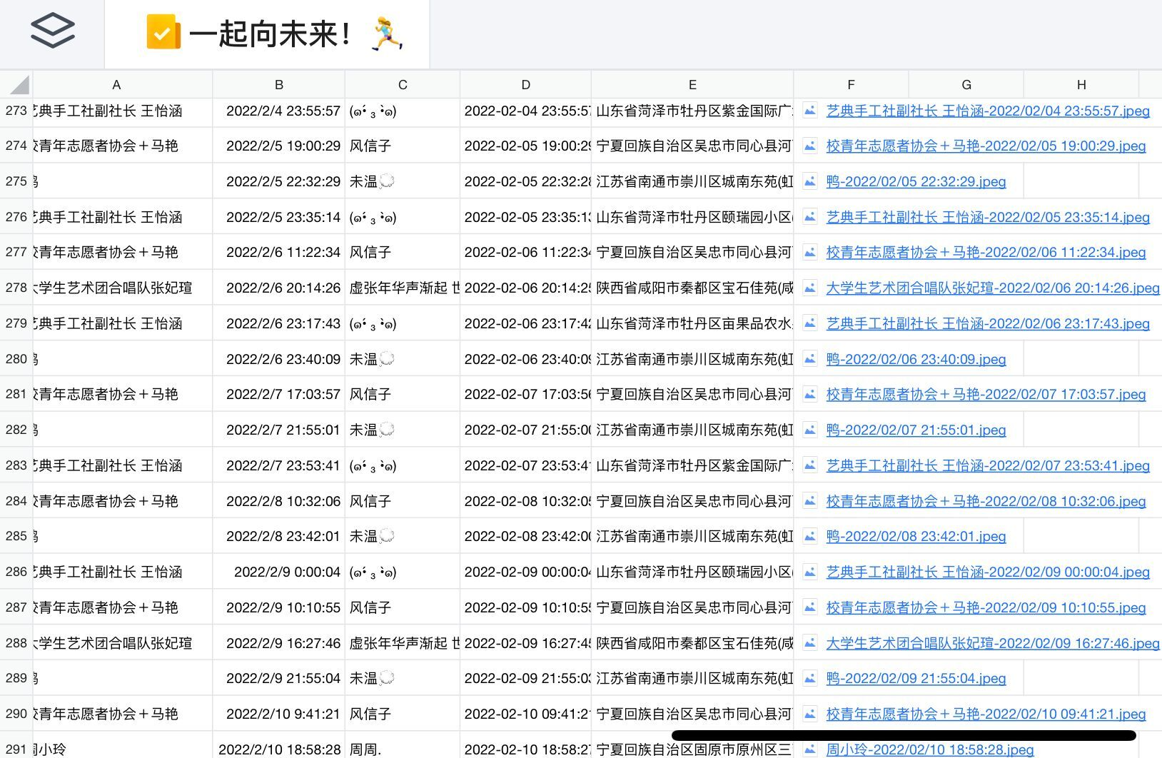 习近平新时代中国特色社会主义思想学习社社员们在全国各地通过跑步、瑜伽、有氧操、跳绳等多种运动方式锻炼自我、助力冬奥,运用Keep等软件记录下活力瞬间,并在社团活动群进行打卡。社团全体成员积极参与冬日运动,在冬奥赛场外竞出青春朝气,严寒也挡不住似火热情。线上打卡活动从2022年1月9日持续至2月20日。
