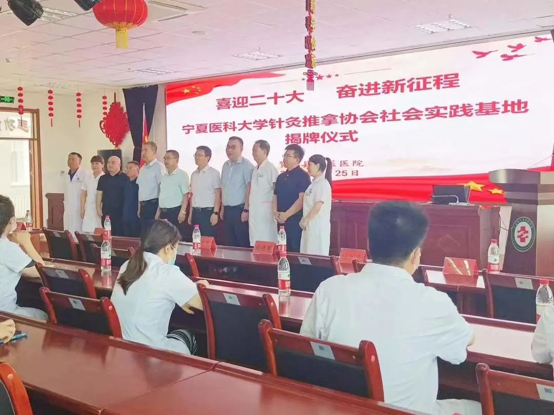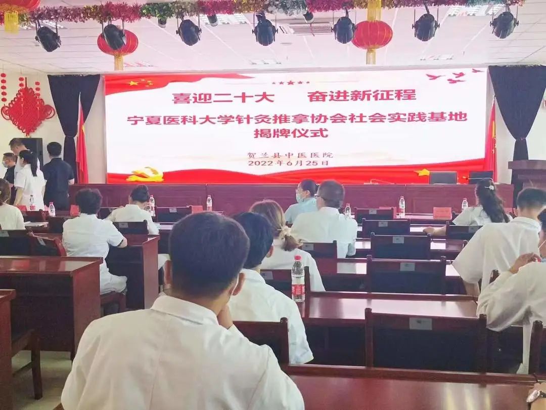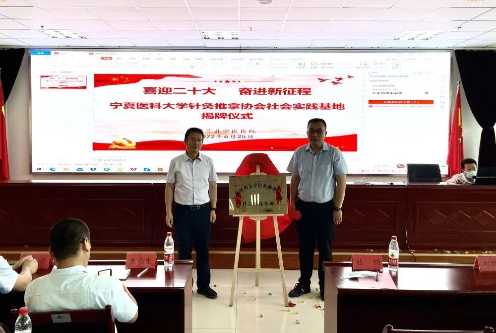 2022年6月25日,伟德国际1946源于英国针灸推拿协会社会实践基地在贺兰县中医医院正式挂牌,中医学院党委书记邱鹏飞、院长朱向东,贺兰县政府副县长杜钧、卫健局局长王旭升、副局长杨艳军,贺兰县中医医院院长杨少亭,协会指导老师郭斌出席仪式。实践基地的落成为协会学生提供了方便的实践平台,为精进技艺,提升能力提供发展空间。