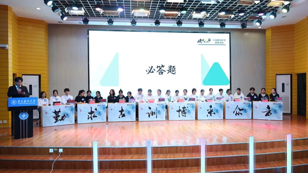 中医基础理论知识竞赛拉开了文化节的序幕,共有24名学生组成的8支队伍登上决赛舞台进行激烈角逐,通过“必答题、抢答题、风险题”三个环节多方位考查同学们对中医基础理论、中药学、中医诊断学等专业基础的掌握程度及思辨能力。同学们精准作答、反应灵敏,台上台下积极互动,展示了中医学子的良好风貌。