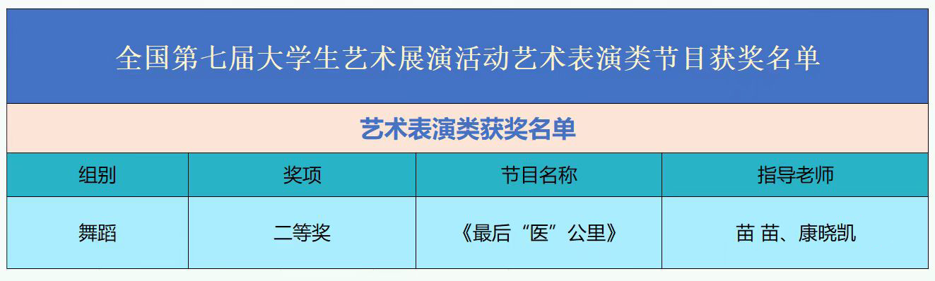 学校将以此次获奖为契机,持续营造以美育人、以美化人、以美培元的校园文化环境,不断完善美育设施、不断提升美育水平、不断显现育人成效,着力培养德智体美劳全面发展的新时代医学专业人才,同时为国家艺术教育事业发展和文化艺术传播贡献力量。