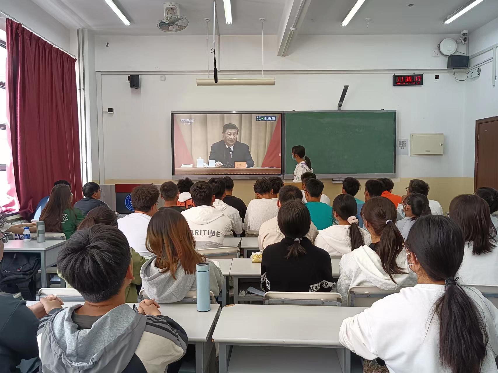 学校党委副书记、校长姜怡邓,党委副书记朱建华,党委常委、副校长刘志宏,党政群部门负责人,各基层团委(团总支)书记、校院学生组织、第23.24届研究生支教团成员、第十四期青马班学员、290个团支部多种形式收看直播,全校近万名团员青年共同见证百年荣光,在实现中华民族伟大复兴的时代洪流中凝聚起踔厉奋发、勇毅前进的青春蓬勃力量。总书记的重要讲话在全校团干部和广大团员青年中引发学习热潮,大家纷纷表示,要深入学习领会总书记的重要讲话精神,自觉听从党和人民召唤,胸怀“国之大者”,担当使命任务,到新时代新天地中去施展抱负、建功立业,争当伟大理想的追梦人,争做伟大事业的生力军,让青春在祖国和人民最需要的地方绽放绚丽之花!