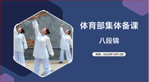 为弘扬民族传统体育文化,丰富体育线上课程教学内容,也为学生强身健体,磨砺意志,净化心境,增添战胜疫情的信心。1012日上午,体育部在钉钉群召开本学期健身气功《八段锦》第二次教研活动,学校通识组督导专家和部门全体教师参加了本次集体备课