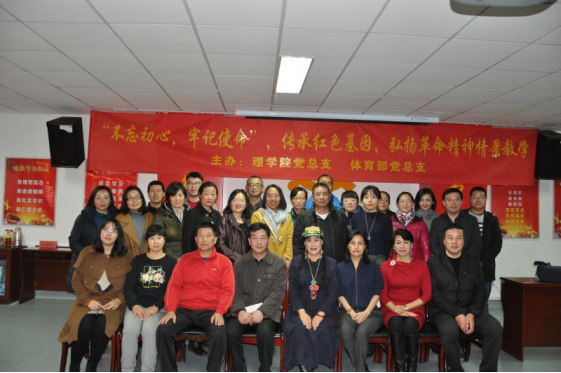 11月29日下午, 由理学院党总支和体育部党总支联合主办的“不忘初心 牢记使命”,传承红色基因,弘扬革命精神情景教学主题党课,在厚生楼三楼的“党员之家”举办。体育部和理学院全体党员共同参加了学习。