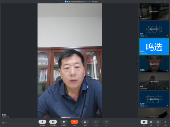 最后党总支书记雷鸣选同志对所有党员提出了几点希望:一是全体党员要坚持以习近平新时代中国特色社会主义思想为指导,切实增强“四个意识”,从政治、全局、战略的高度认真学习领会习近平总书记视察宁夏重要讲话精神,充分认识讲话重大意义,深刻领会讲话丰富内涵,准确把握讲话精神实质,切实把思想和行动统一到总书记的重要讲话精神上。二是作为高校教师要把自己“立”起来,把高校教师的形象“树”起来。任何时候不能放松对自己的要求,要提高自己的政治站位,立足本职工作,切实发挥党员作用,把理论知识落实到行动中,积极参与到具体的工作当中。三是在新时期“立德树人”根本任务的前提下,每位党员要结合工作实际,思考如何更好、更充分地发挥党员教师的先锋模范作用。每位党员要始终保持清醒地认识,时刻牢记党员身份,在做好本职工作的同时要有奉献精神,时刻以工作为先、为重,组织安排的工作要积极地做好,发挥好引领作用。四是作为高校教师,要时刻牢记育人任务,这是一项任何时候都不能放松的伟大的战略工程。随着课程思政教育工作的逐渐深入,体育教师应该如何体现课程思政,如何将课程思政与体育课有机的结合起来是大家应该思考和探索的。假期即将开展“三进”培训班,要配合学校在“三进”工作中做好各项工作。五是要继续落实和开展好主题党日活动,结对共建工作要积极推进。每位党员要积极参与到主题党日活动中,发挥自己的特长,在帮扶和共建过程中,把工作落实好,把服务开展好,做出实效,抓出成效。