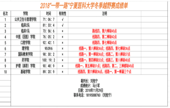 本次比赛一改以往冬季越野赛接力跑模式,融合定向比赛形式,以丝绸之路北线沿线国家或城市为题命名各线路标点进行比赛。每个代表队由32人(男生16人、女生16人)组成。比赛中男女各四组,每4人为一组同时出发,按各自规定的线路(约1200米)完成4-5个定向点,4人全部到达后将接力棒(指卡和地图)交给下一组,8组全部完成规定路线后,打点正确并用时最少的队伍获胜。最终公共卫生与管理学院以76′06″7获得团体冠军。