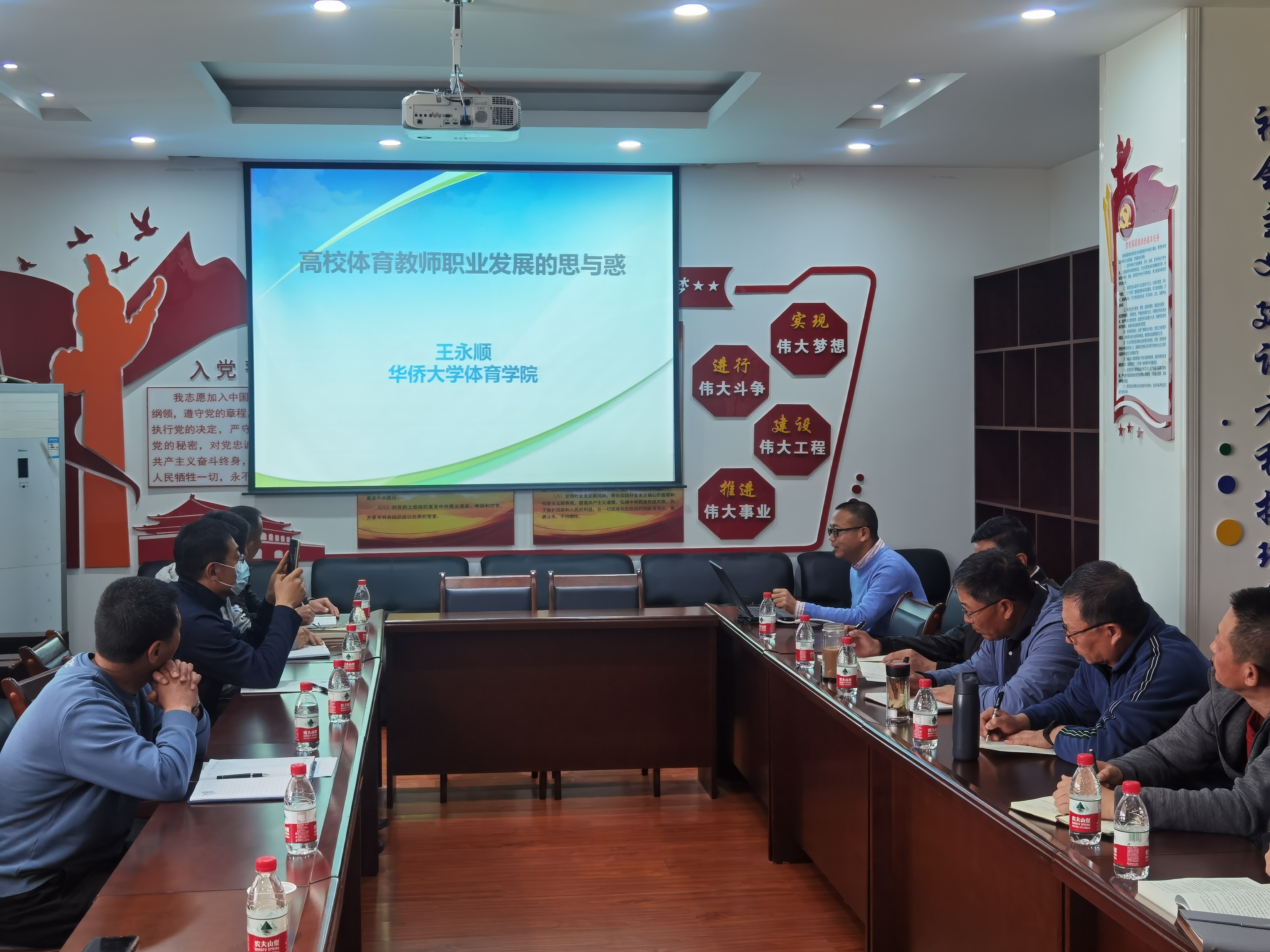 王永顺副教授则和体育部全体教师及来自宁夏大学和北方民族大学的教师代表一同探讨高校体育教师发展的现状及反思。