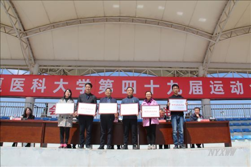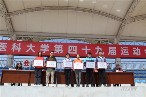 随着一百米预赛的枪响,正式拉开了竞赛项目的帷幕。在两天半的赛程中,来自各学院、分工会、教学实习医院的51支代表队,4000余名师生参加了56个项目的角逐,评选出优秀裁判员23人、优秀运动员36人,1200人取得名次受到表彰,获得学生团体总分前六名的分别是:临床医学院1队、临床医学院2队、中医学院、公共卫生与管理学院、药学院、护理学院(高等卫生职业技术学院)。临床医学院2020级杨涛同学以2分04秒20的成绩刷新了学校沉寂30年的男子800米记录,成为本届运动会的亮点。获得教工团体总分前六名的分别是:附属石嘴山市第二人民医院、附属石嘴山市第一人民医院、基础医学院分工会、第三临床医学院、附属自治区中医医院教辅、科研分工会。基础医学院、公共卫生与管理学院、护理学院、口腔医学院、理学院、国际教育学院被评为体育道德风尚奖。