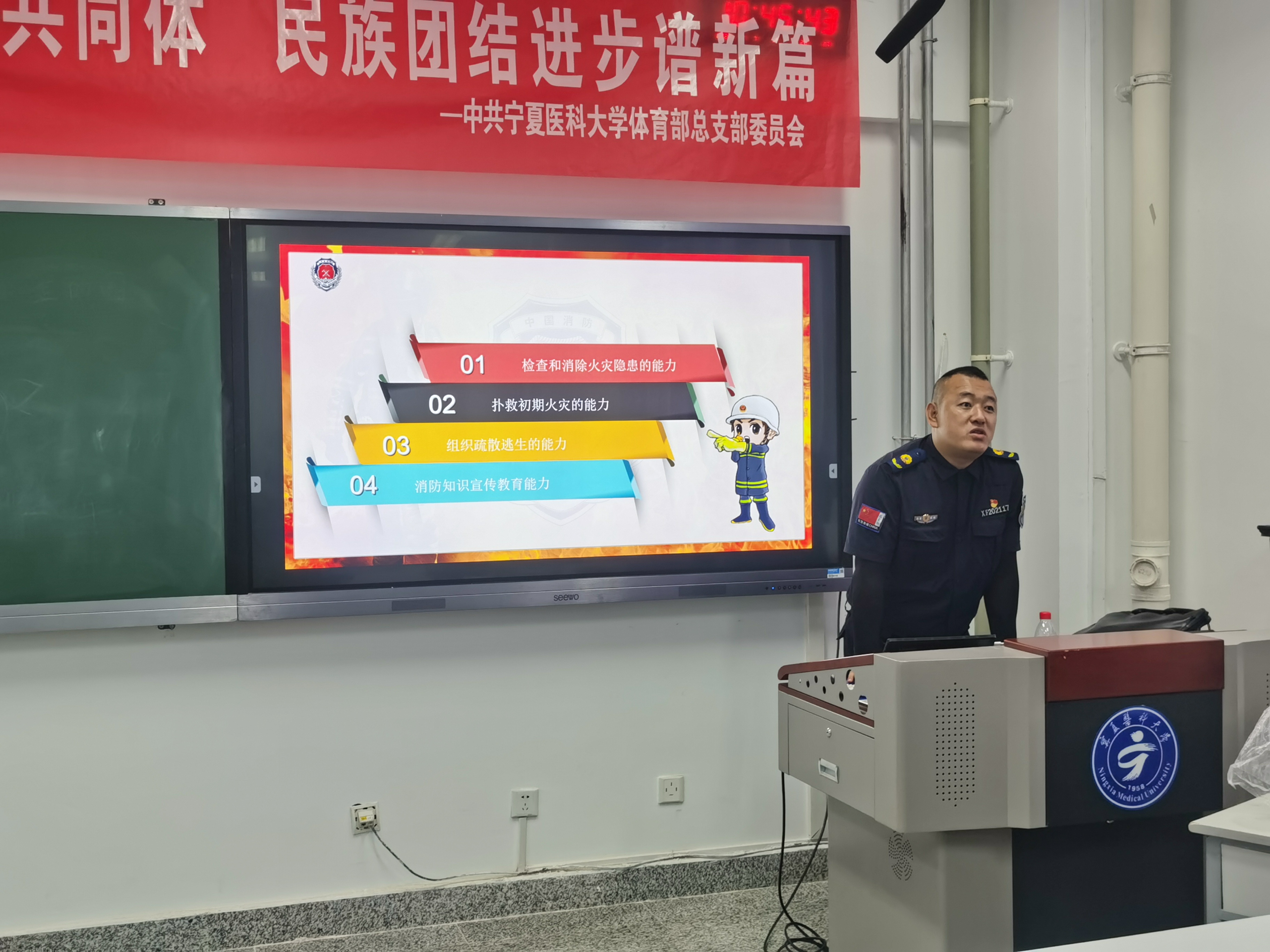 学校保卫处消防科给予了技术指导和帮助。宁夏消防协会科普专业委员会,也特别重视今天的培训,特委派协会科普志愿者吴卫东教官为我单位授课。