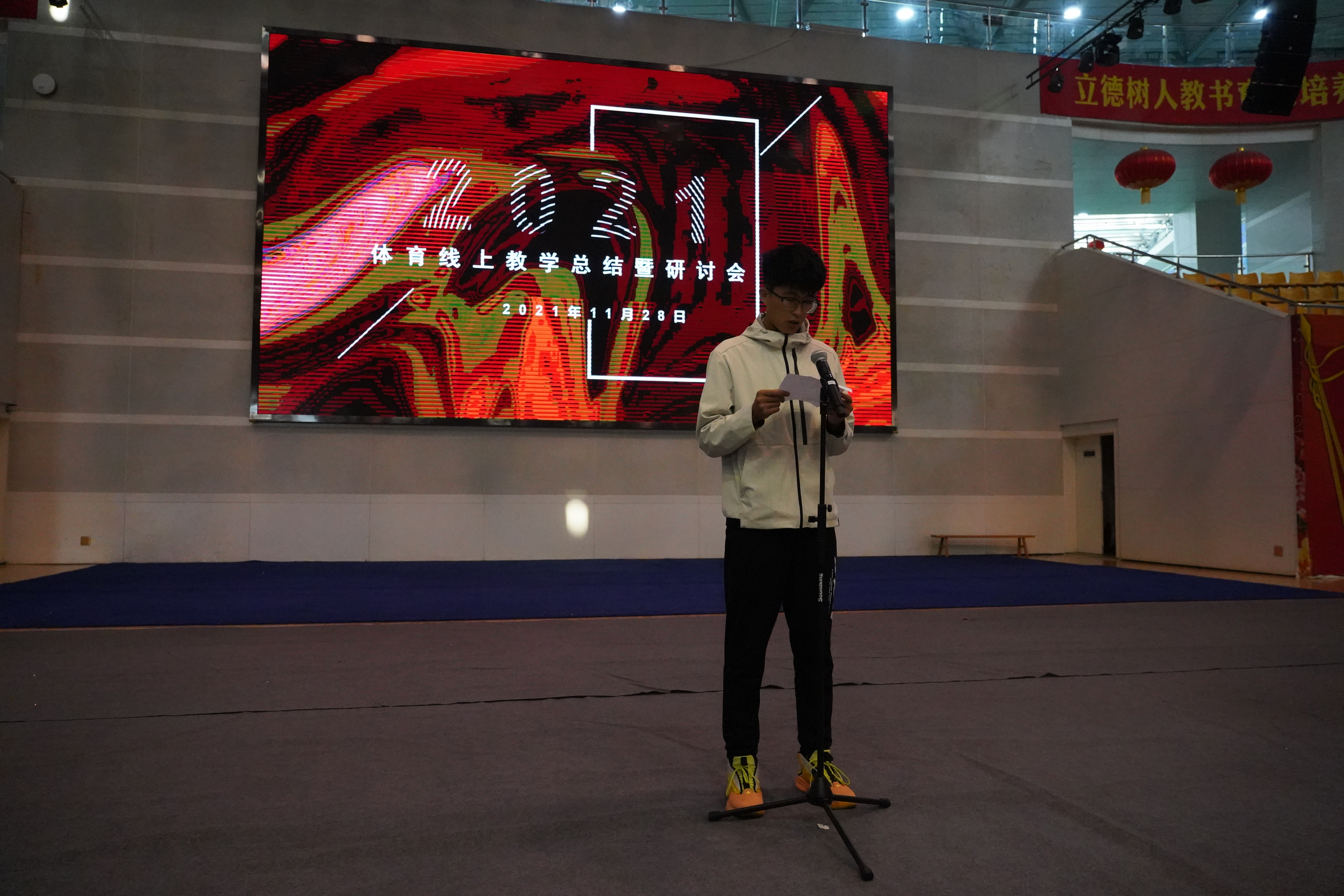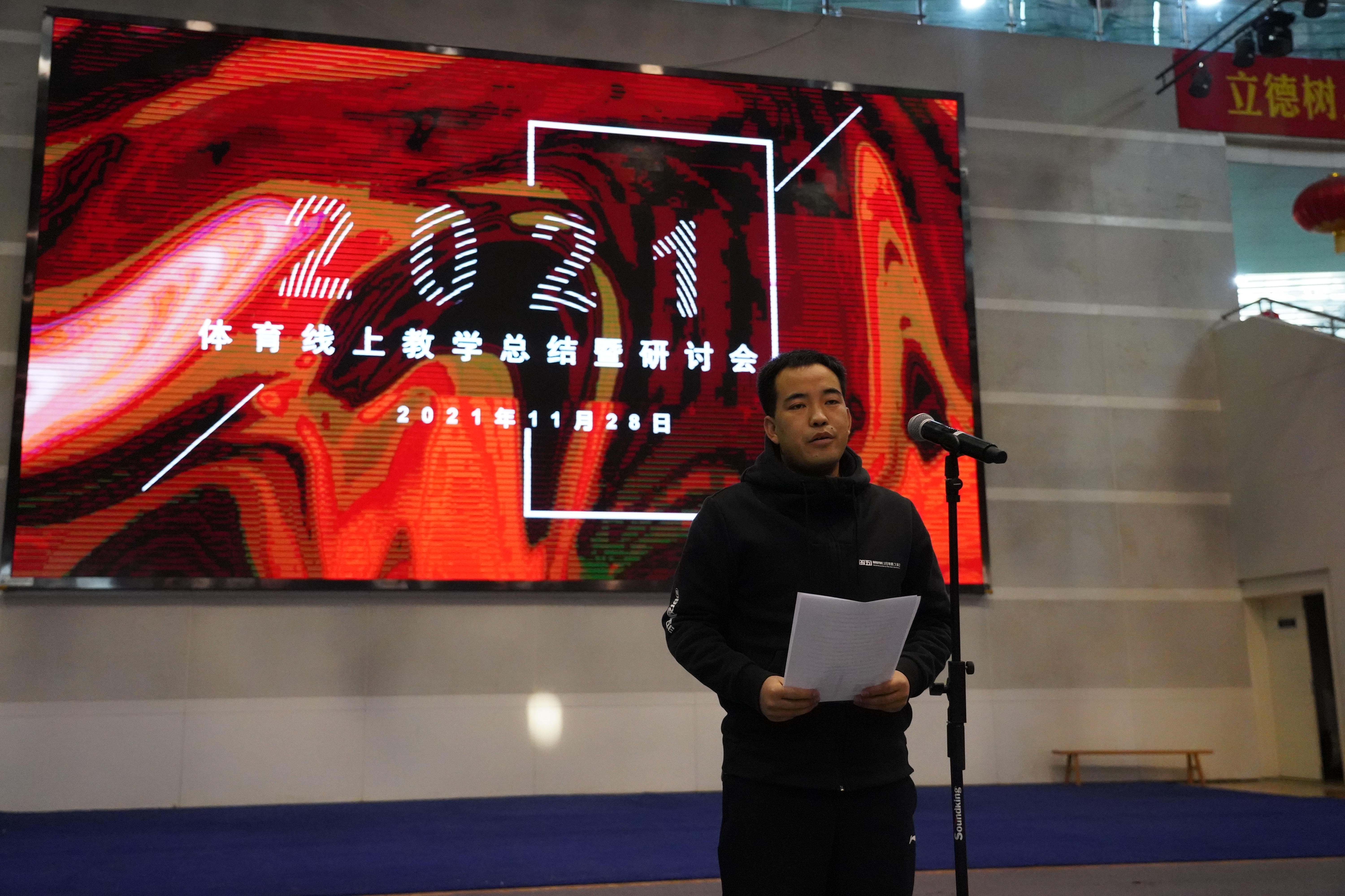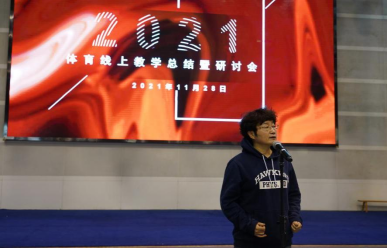 体育课线上教学总结暨研讨会于11月29日下午14:30在弘毅体育馆圆满举办。学校教务处、教师教学发展中心、教学质量监控与评估中心相关负责人,体育部全体教师及2020、2021级各选项班体育委员120余人参加研讨会,会议由体育部副主任姚正宁主持。