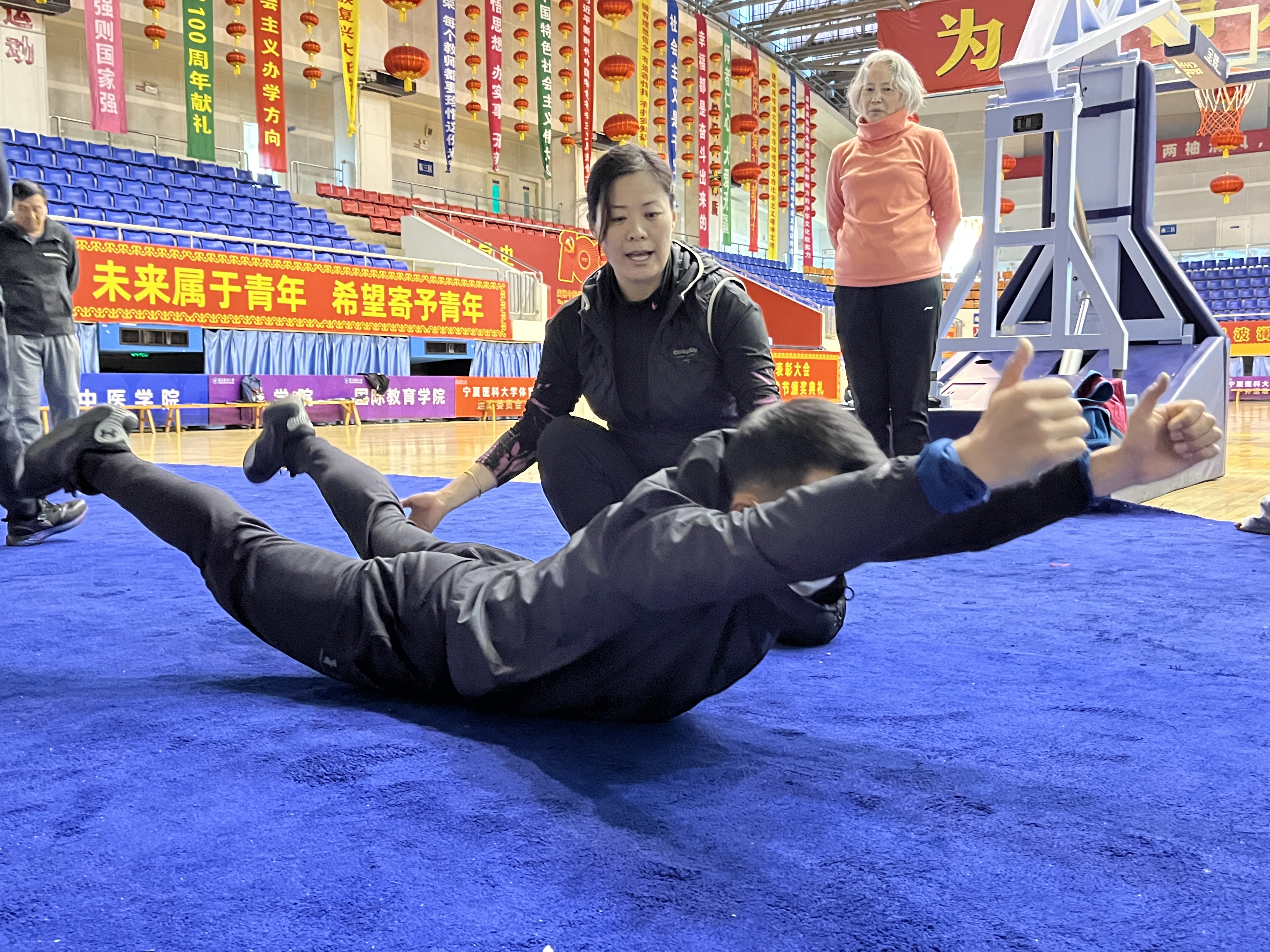 在弘毅体育馆篮球场进行素质-术科技能经验分享活动中,张帅老师从静态拉伸和互助式拉伸两个方面,进行了身体八个部位柔韧素质的分享;吴辉老师针对腰腹力量的练习,将腹背脊练习和放松方法进行了力量素质的分享;吴伟老师针对力量素质练习,通过器械力量练习和场地力量练习,详尽地介绍了身体各部位的练习方法。