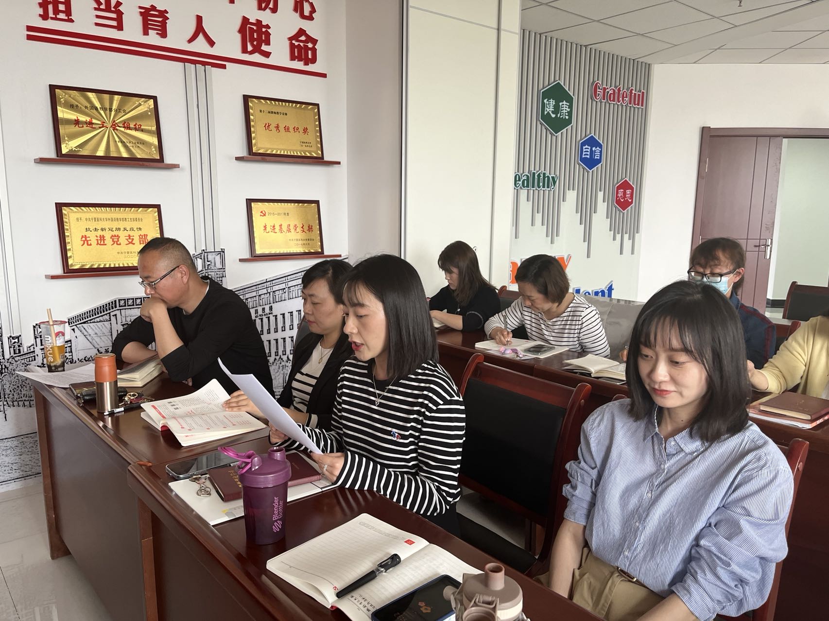教学部党政负责人分别作了主旨发言,强调,习近平总书记视察中国人民大学重要讲话立意高远、视野宏大、思想深邃、内涵丰富,是习近平新时代中国特色社会主义思想的重要组成部分,是指导新时代我国高等教育事业发展的纲领性文献。希望广大教职工要认真反复研学,提高认识,把握其核心要义;希望大家学以致用成就自我,孜孜以求勇攀高峰,做新时代的“四有”好老师;希望大家知行合一爱岗敬业,久久为功立德树人,做学生为学、为事、为人的“大先生”;希望大家共同努力,把每一项工作落到实处,在新时代新宁医新征程中踔厉奋发、笃行不怠,推动教学部高质量发展,以实际行动迎接党的二十大和自治区第十三次党代会的胜利召开。