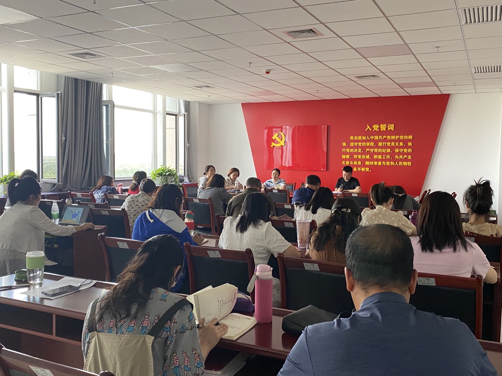 6月8日下午,外国语教学部召开学习宣传贯彻习近平总书记给南京大学留学归国青年学者重要回信精神专题研讨会,教学部主任郝向利主持会议,全体教职工参加会议。