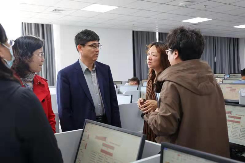 10月11日下午,学校校长姜怡邓,副校长刘志宏、杜勇,带领办公室、教务处、教学质量监控与评估中心负责人一行深入到外国语教学部一号语音室,随堂听取外国语教学部金巍教授为2021级预防2班学生讲授的大学英语课程,并对综合教学实验楼语音室使用情况进行了调研。