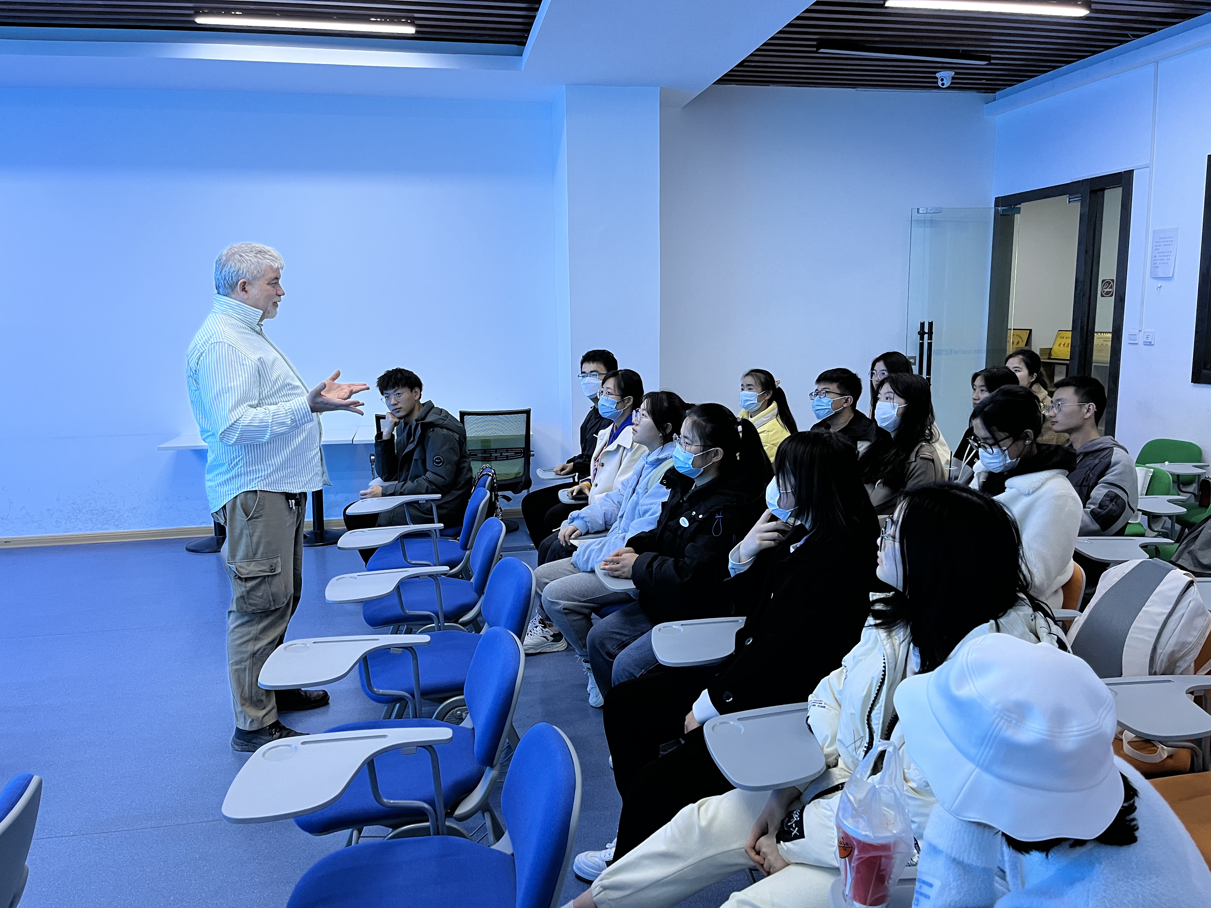 活动得到了广大学生的积极响应,为避免人员聚集,也为了更好地保证英语角活动中人人能开口、能交流,活动现场将人数限制为20人以内。在短暂的英语破冰环节后,学生们逐渐从拘谨到放松。外籍教师Zach通过看图说话等活动,鼓励学生用英文描述所见、所感并进行交流与讨论。活动氛围轻松,每一位参与者都沉浸在英语学习的世界里。