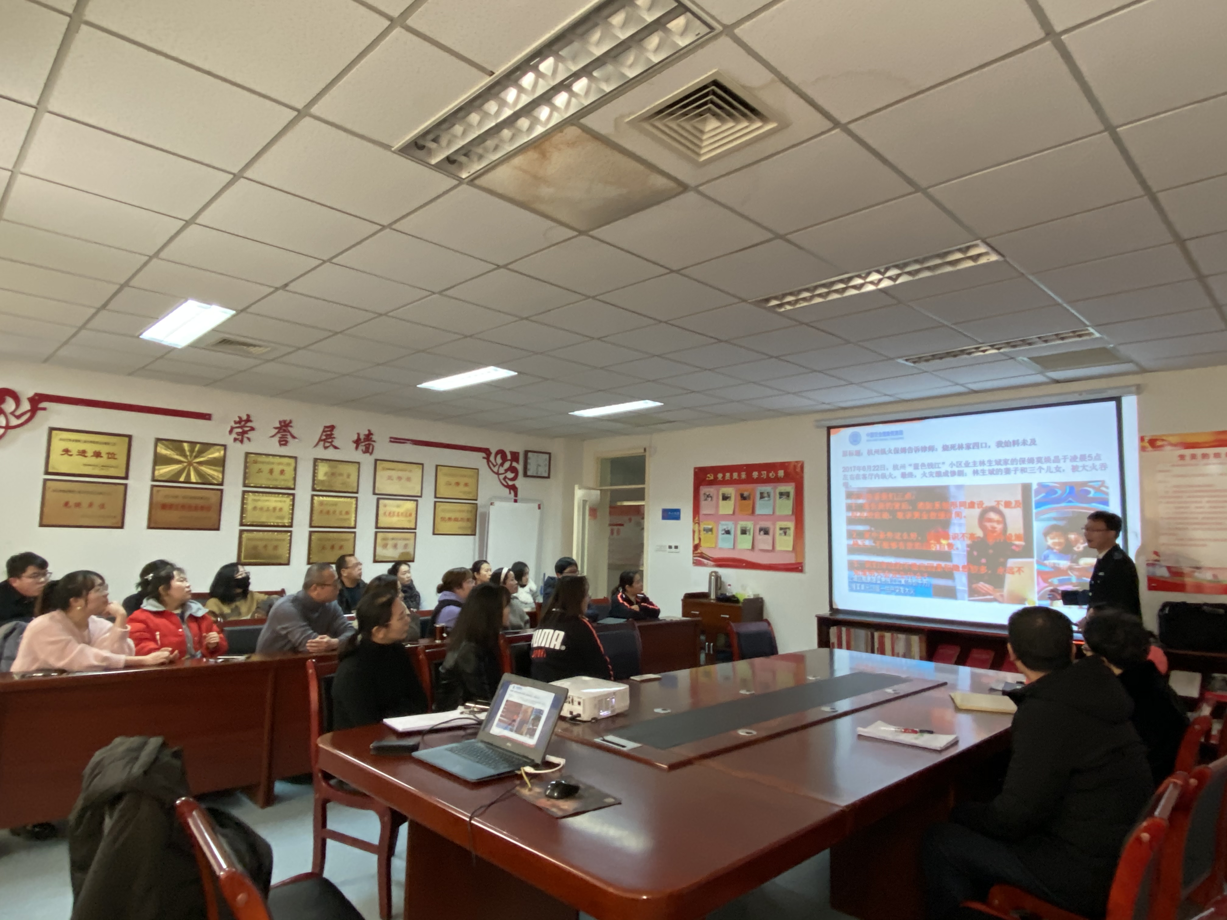 安全健康教育网刘汉玉教官从如何避免生活中常见火灾隐患、如何正确报火警、如何扑救初期火灾、如何逃生等方面,结合近年来现实火灾案例进行了培训,一个个惨痛的火灾景象告诫大家消防安全要警钟长鸣,常备不懈,防微杜渐,禁于未然。教师们听得聚精会神,积极与教官互动。