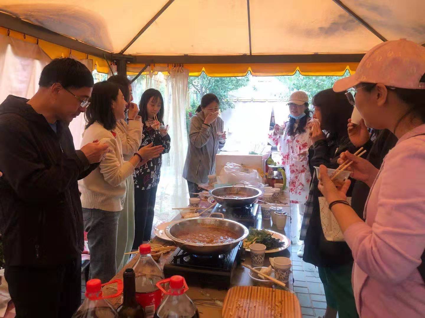 工会委员们精心设计了自助烧烤、采摘、纸牌竞技和你来比划我来猜等活动。老师们的积极参与,分工协作,让寂静的小院沸腾了起来,欢声笑语洋溢在小院的每个角落,平日工作学习中的疲劳与压力也在爽朗的笑声中得到缓解和释放。同时,通过此次春游户外拓展活动也进一步增进了教师间的沟通和友谊。