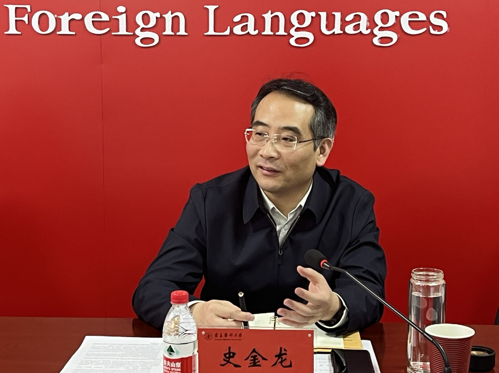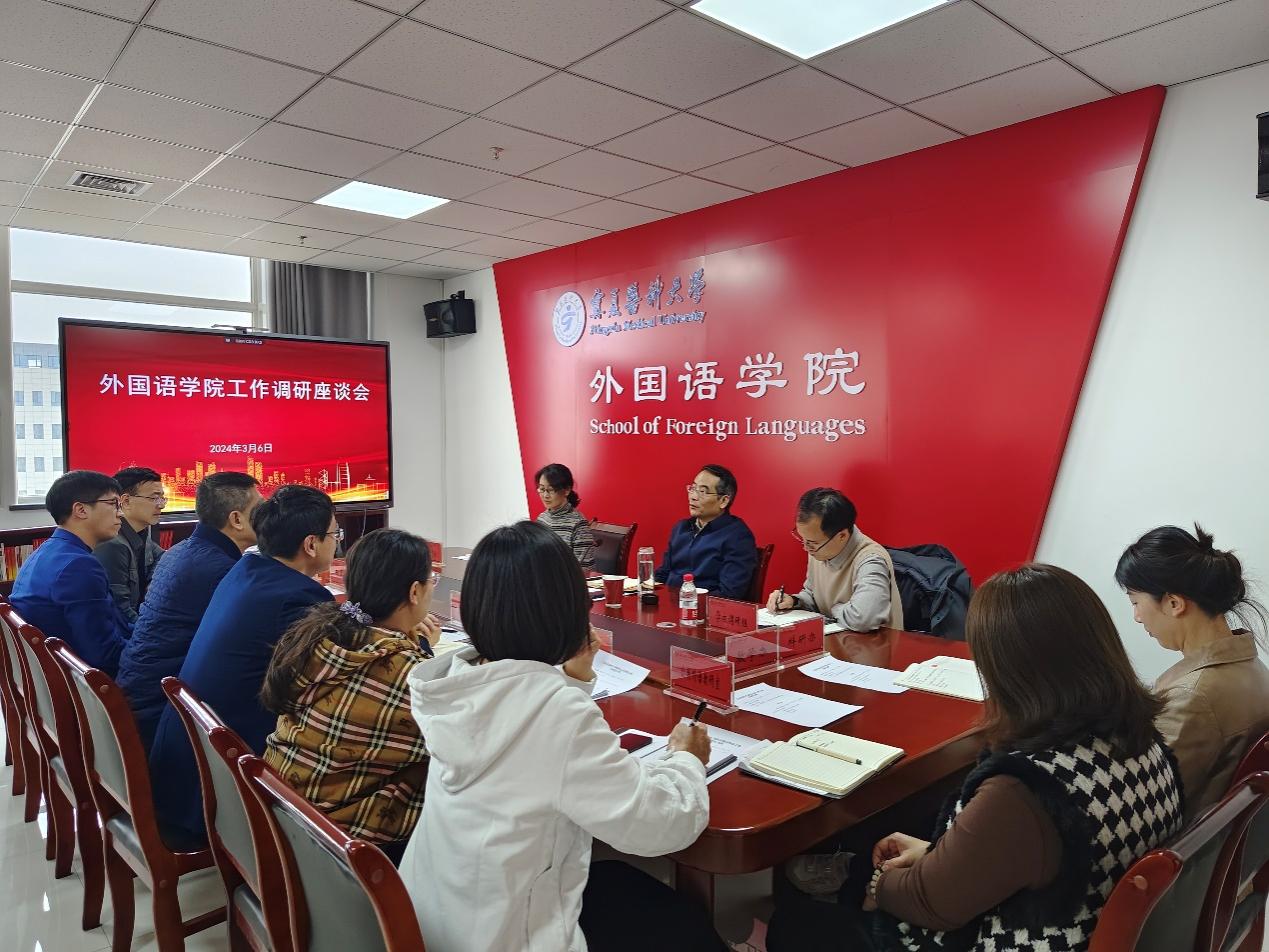 3月6日下午,学校党委常委、副校长史金龙一行到外国语学院开展调研,学院班子成员、中层干部及教师代表参加座谈会。