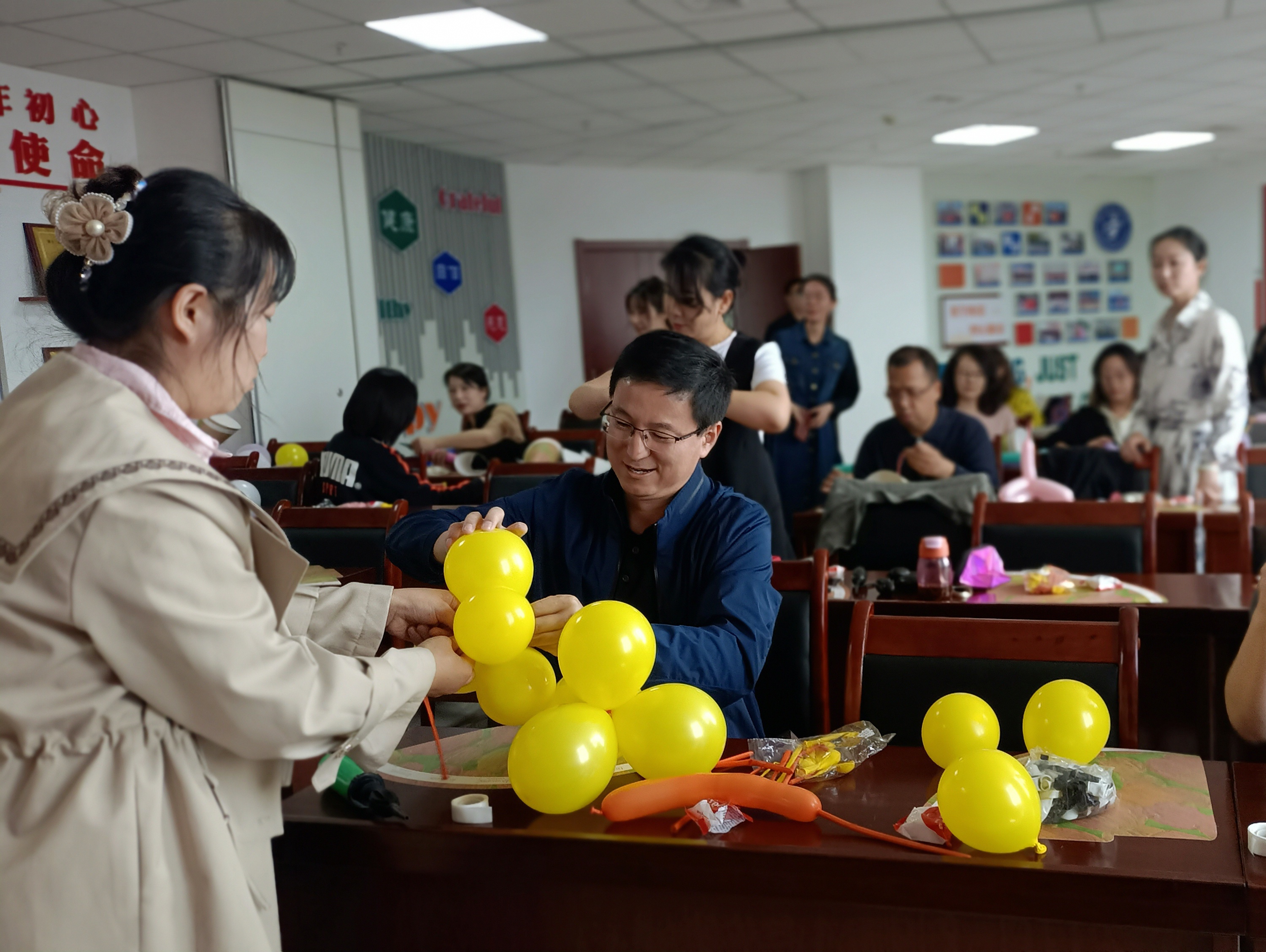 活动开始,组织教职工们学习了学校工会2024年度职工之家(小家)文化活动激励计划,传达了学校第51届运动会学院的具体安排。然后,一起观看“冰淇淋气球”制作视频教程。视频还没播完,大家就迫不及待地开始将手中的气球扭动、打结、装饰、粘贴……可爱的小黄鸭、萌萌的国宝熊猫、活泼的小兔子活灵活现地制作出来了。职工小家里笑声此起彼伏,大家似乎又回到了无忧无虑的童年时期,气氛和谐愉悦。当分工会委员把1个积分送到参加活动的职工手里时,职工表示一定要积极参加职工小家组织的文体活动,对于能够兑换的文创产品感到非常好奇。