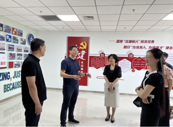 卢征、冯欣一行实地参观了学院“习语用典˙润心外院”文化长廊、党员之家和职工之家,并走访了语言实验室,对学院文化建设、教学设施等情况进行了全面了解。座谈会上,外国语学院党总支书记马立虎详细介绍了学院历史、党建工作、人才培养、科学研究、学科建设等情况。双方就党建业务互促、师资队伍建设、学科融合发展、医学英语教学等问题进行了广泛深入地交流。