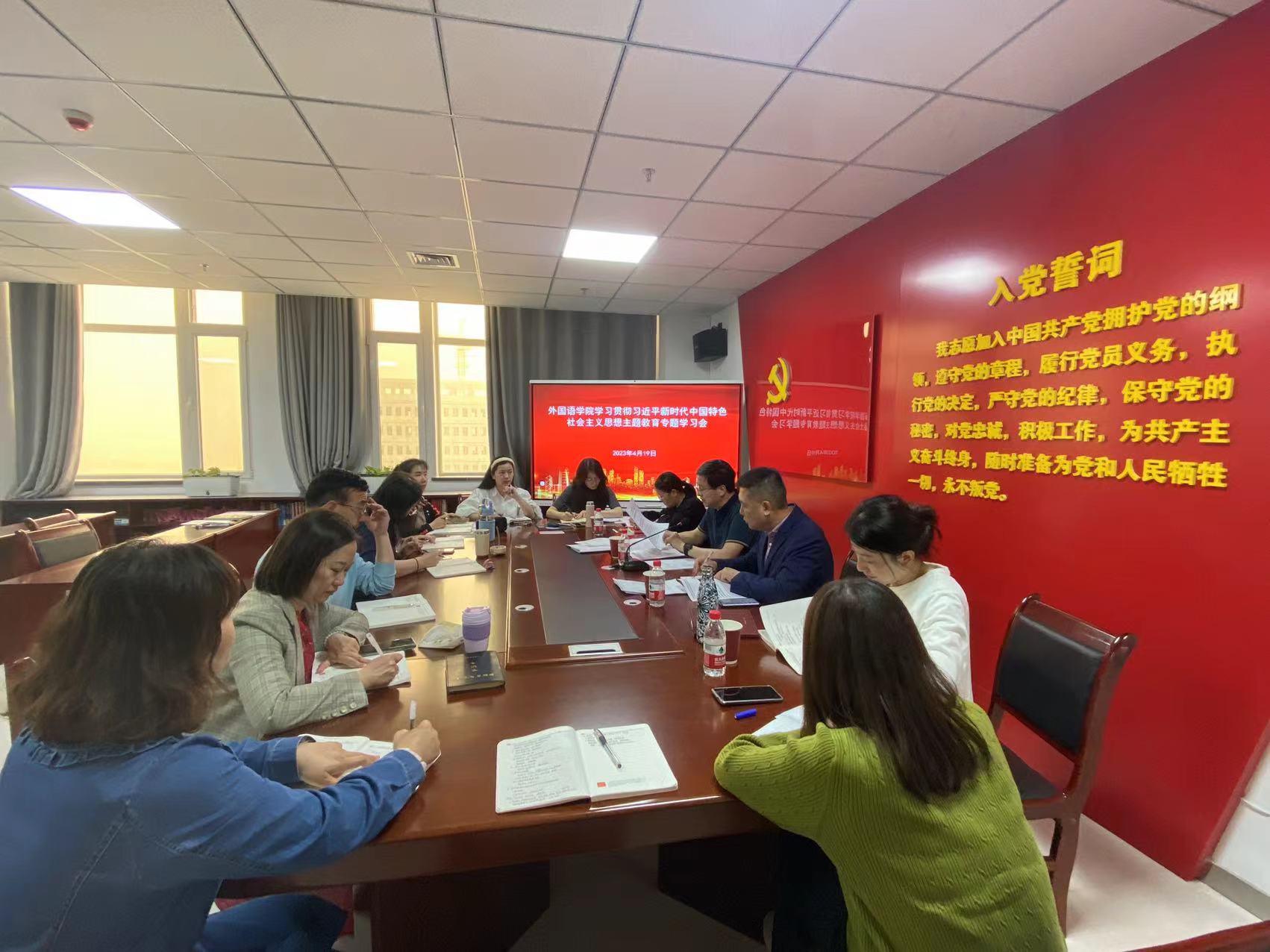 4月19日,外国语学院党总支召开学习贯彻习近平新时代中国特色社会主义思想主题教育专题学习会,学院领导班子、中层干部及全体党员参加会议,会议由党总支书记马立虎主持。