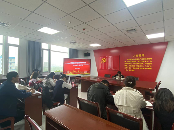 5月5日下午,外国语学院教师党支部组织召开学习贯彻习近平新时代中国特色社会主义思想主题教育专题学习会,全体党员参加,党支部组织委员张悦主持会议。