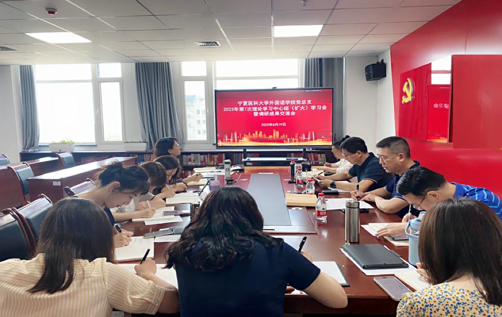 6月19日,外国语学院党总支召开第7次理论学习中心组(扩大)学习会暨主题教育调研成果交流会,会议主题为“学习习近平总书记关于高质量发展和体制改革的重要论述,把调研成果转化为推动学院转型发展的强大动力”,党总支书记马立虎主持会议,学院党总支理论学习中心组全体成员及相关工作人员参加会议。
