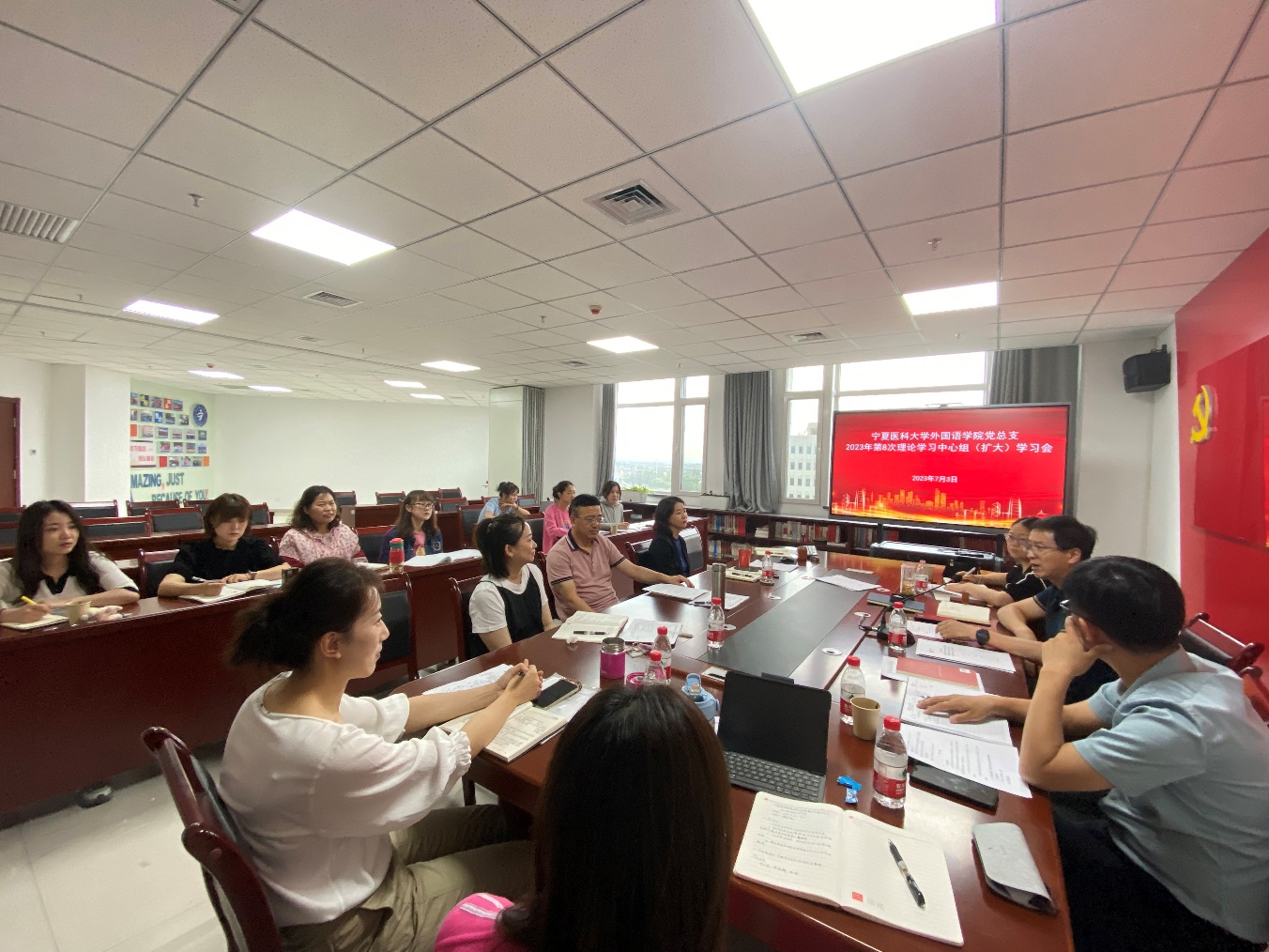 7月3日,外国语学院党总支召开第8次理论学习中心组(扩大)学习会,会议主题为“学习习近平总书记关于安全的重要论述,切实增强安全防范意识,以高水平安全保障高质量发展”,党总支书记马立虎主持会议,学院党总支理论学习中心组全体成员及相关工作人员参加会议。