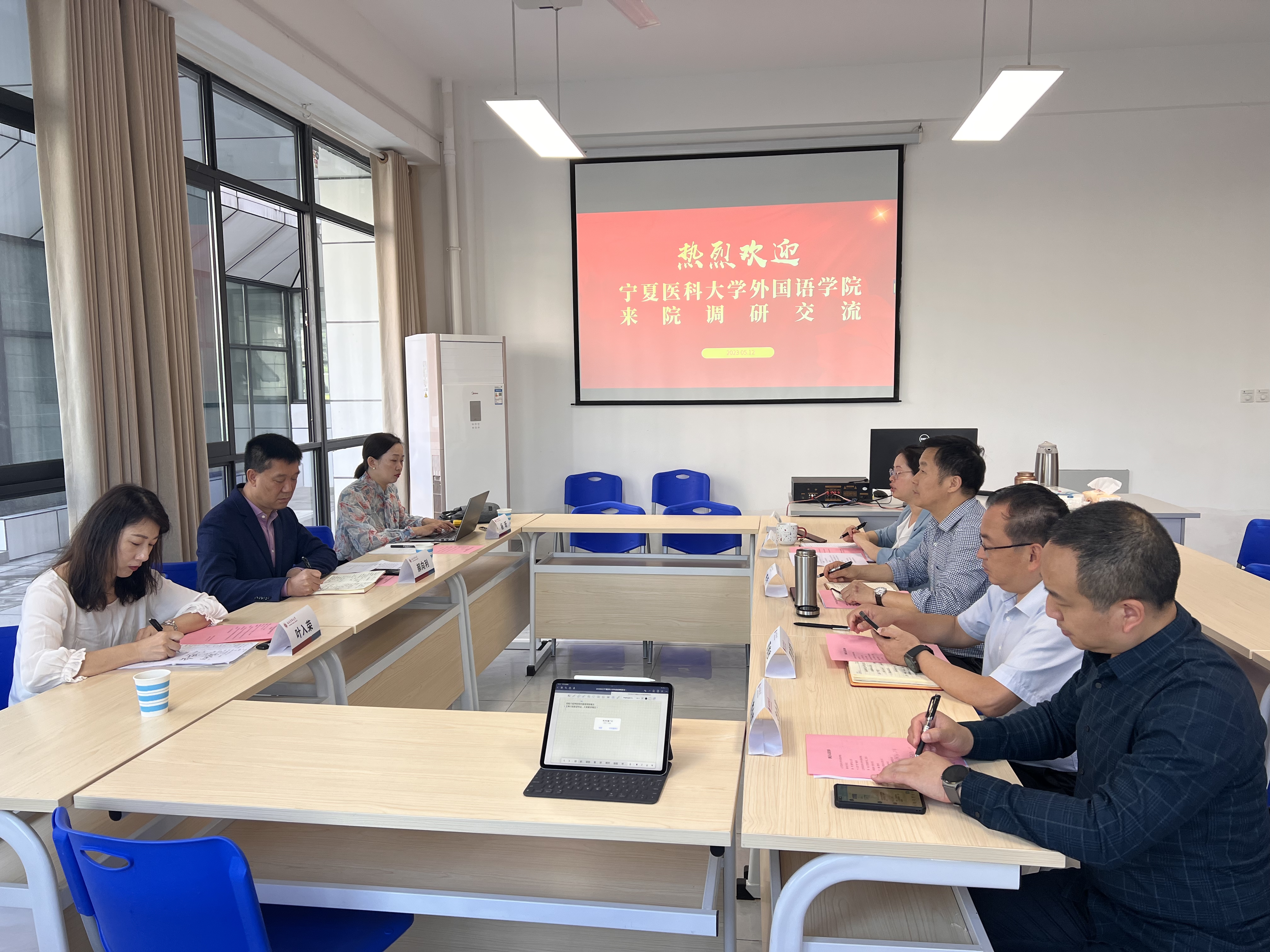 5月12日,郝向利院长一行到达西南医科大学调研学习。西南医科大学外国语学院院长田耘、书记周晓昀、副院长王琳、教研室主任李金海、办公室主任朱琳、科教科长刘晓豫参加了交流研讨。双方就学科建设、师资队伍建设、教学改革、科研发展、学生就业、教学管理等方面进行了深度交流和讨论,一致认为培养具有学科专业知识,掌握外语技能,拥有跨文化交际能力的高素质医学英语人才是医学背景外国语学院的发展方向。