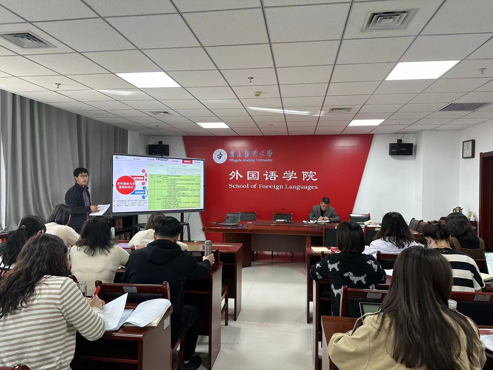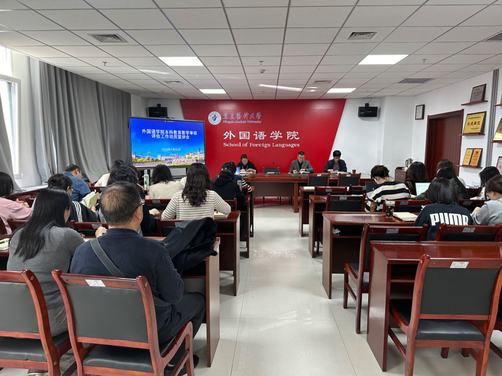 3月26日,外国语学院在知行楼810会议室召开本科教育教学审核评估工作动员宣讲会,院长郝向利主持,学院全体教职工参加。