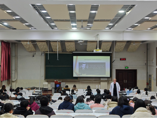 11月20日下午,外国语学院在应谦教学楼103教室成功举办英语文化讲座。外籍教师Mery和John分别以《西班牙文化》和《中医文化在美国》为题进行了生动讲述,吸引了众多师生的积极参与。