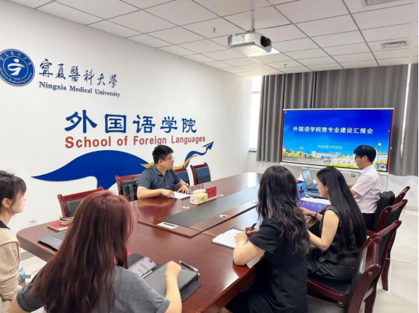 会上,微专业负责人从专业定位、课程体系构建、教学实践进展等方面,向王峰教授全面汇报了“数智医学英语”微专业的建设与运行情况。各课程负责人分别围绕课程教学目标、内容设计及当前面临的教学难点进行简要介绍。