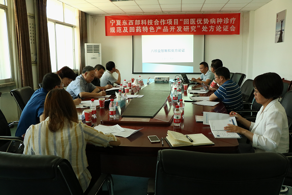 6月12日,宁夏东西部科技合作项目“宁夏特色中医药优势病种诊疗规范及复方特色产品开发研究” 召开了院内制剂申报处方论证会,论证专家组由段金廒教授、侯鸿军主任药师、李晔研究员、刘军主任药师、党毓起主任医师5位专家组成,处方持有者、处方研究者、项目负责人以及各课题负责人、课题骨干成员共 20余人参加本次会议。
