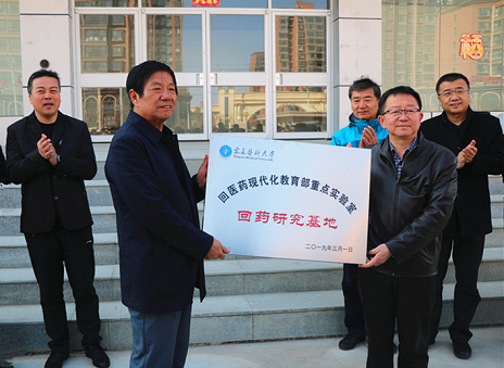实验室常务副主任马英锋宣读了有关实验室研究基地挂牌决定的文件,牛阳副书记将“重点实验室特色中药研究基地”授牌于宁夏明德中药饮片有限公司姜文德董事长。